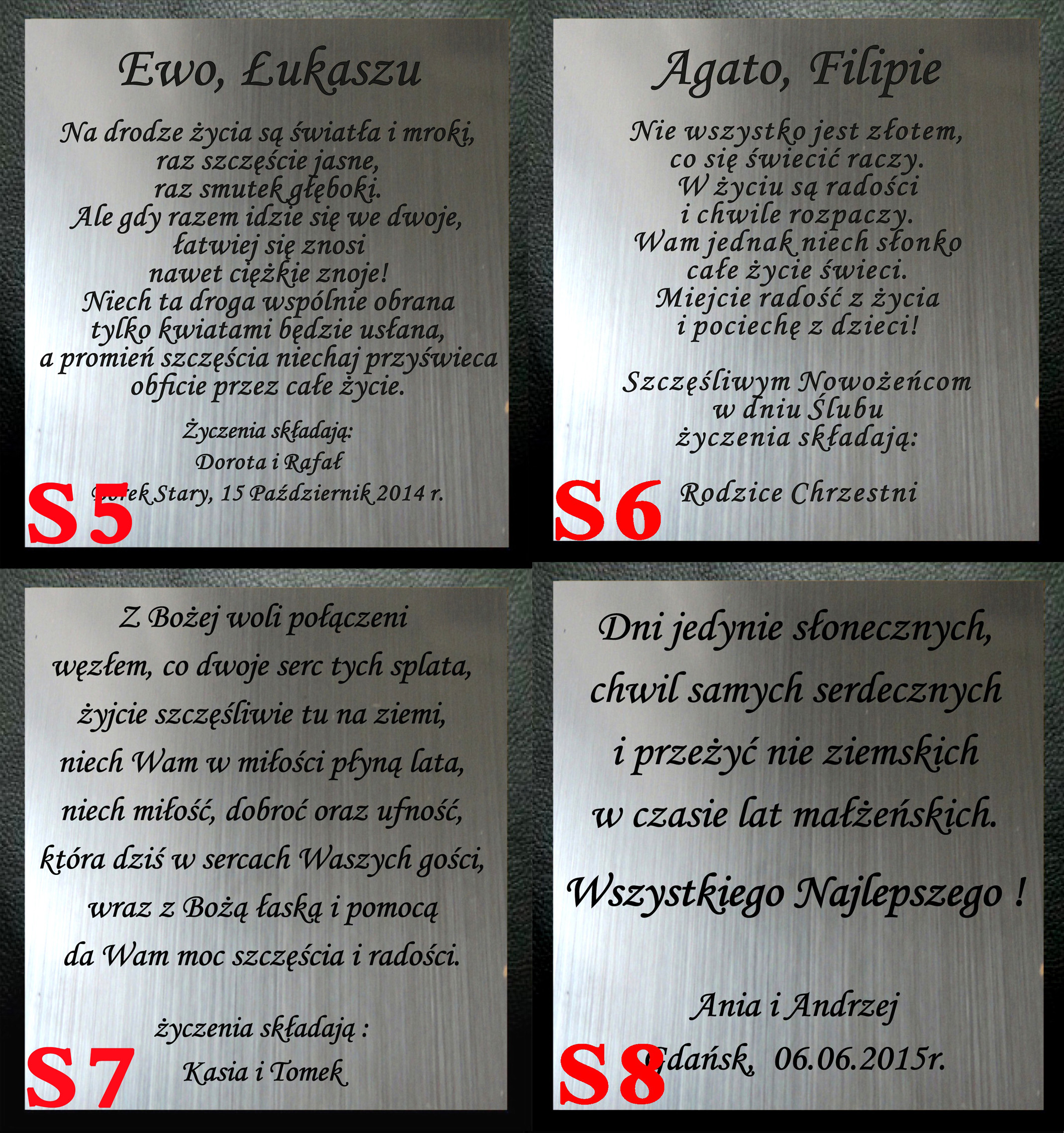 treść dedykacji którą chcą państwo zamieścić