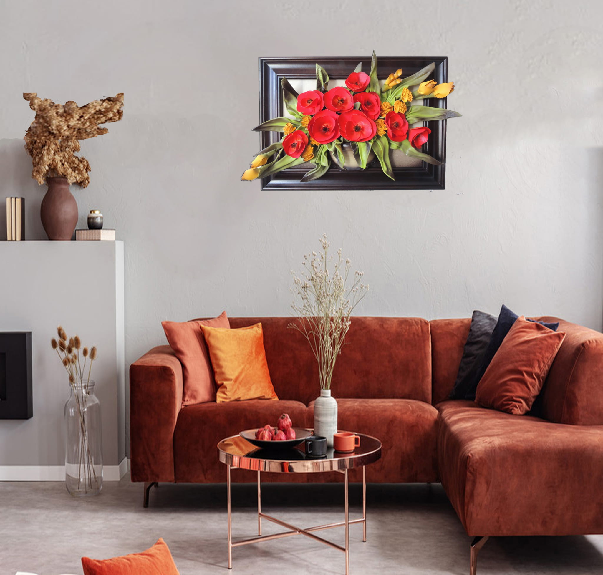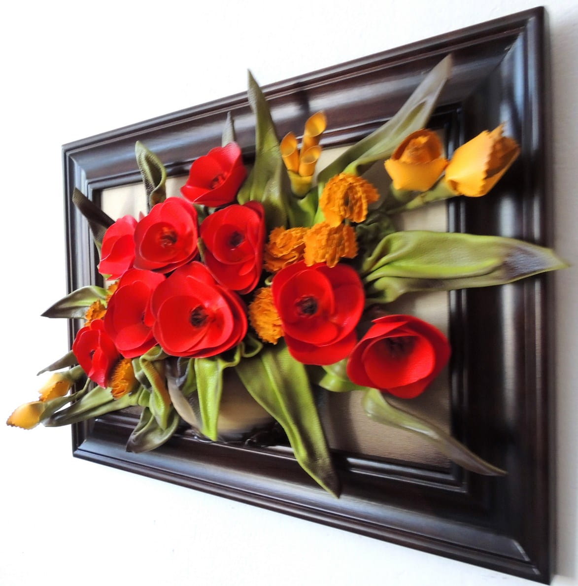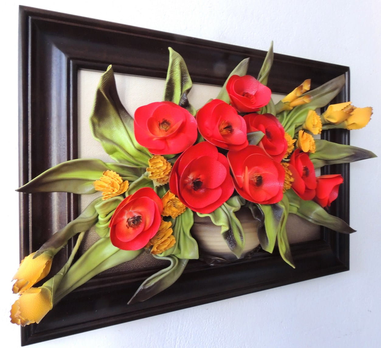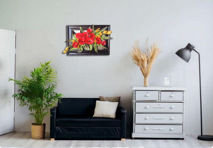 Obraz maki & goździki w koszu na prezent urodzinowy - jubileuszowy- k5-8