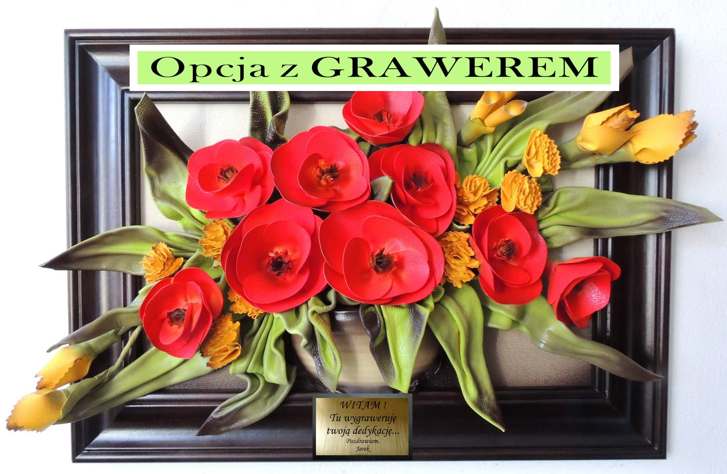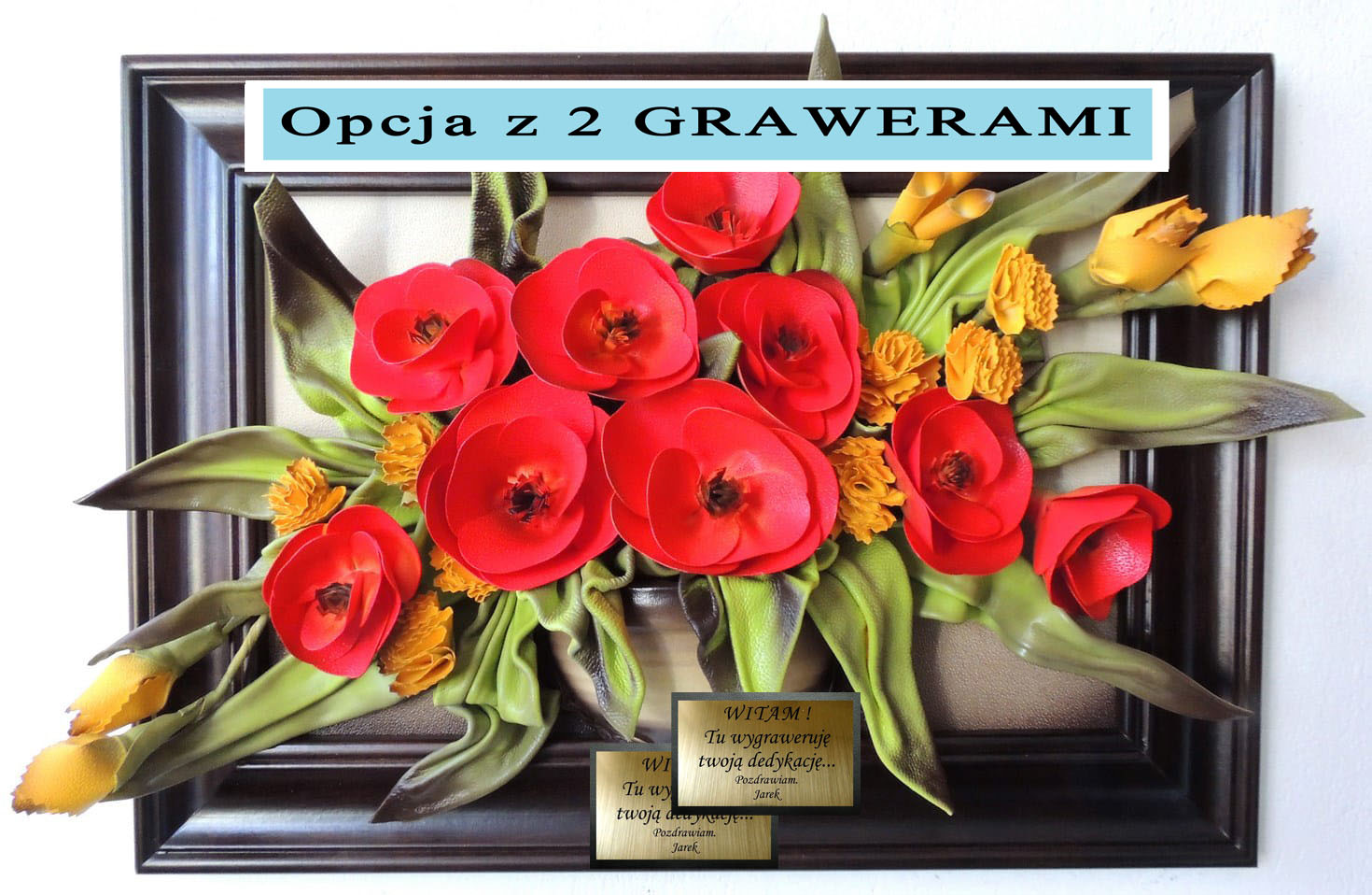 Jeśli chcesz dwie dedykacje - 2 grawery na tabliczce z przodu i na odwrocie obrazu