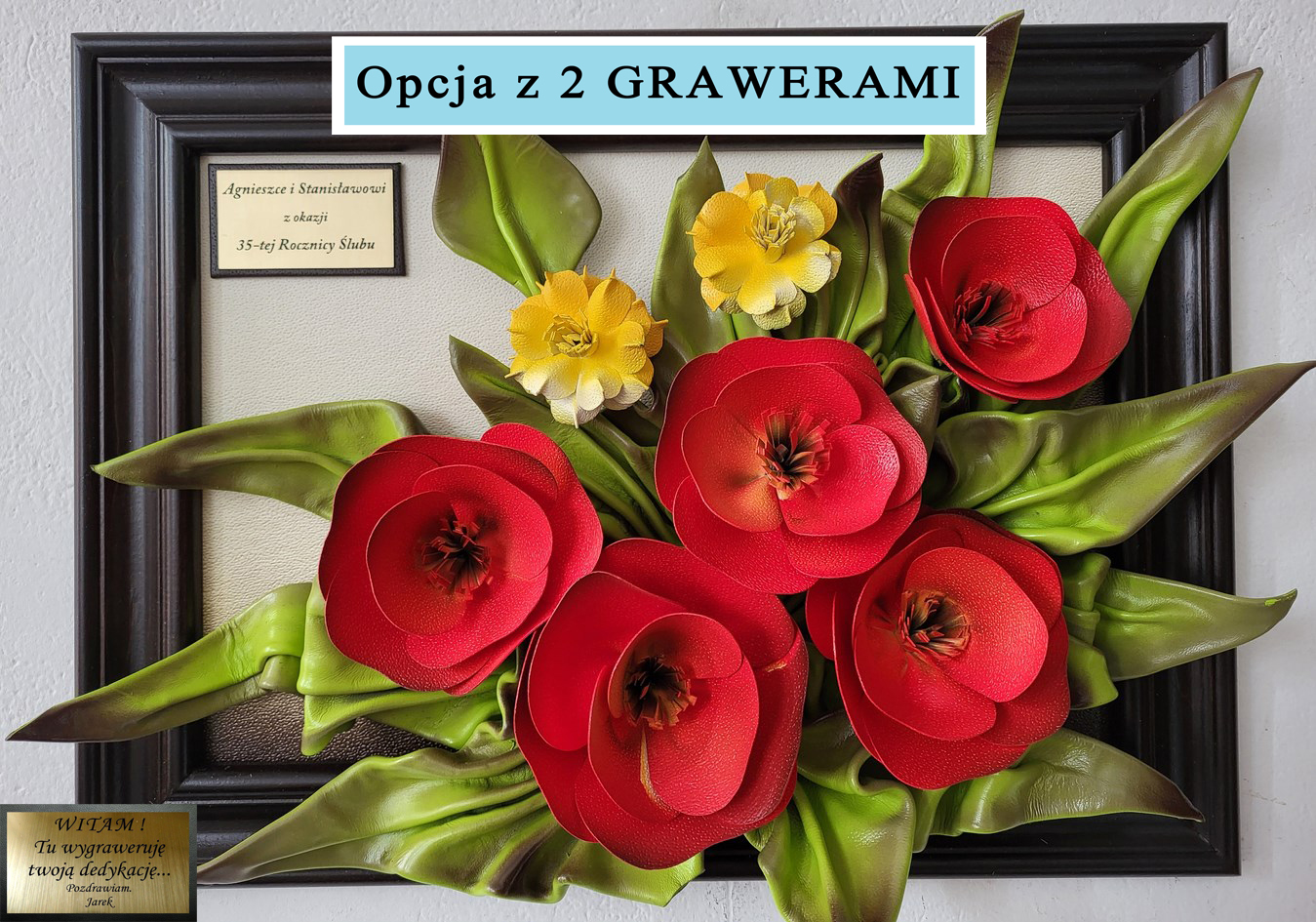 Jeśli chcesz dwie dedykacje - 2 grawery na tabliczce z przodu i na odwrocie obrazu