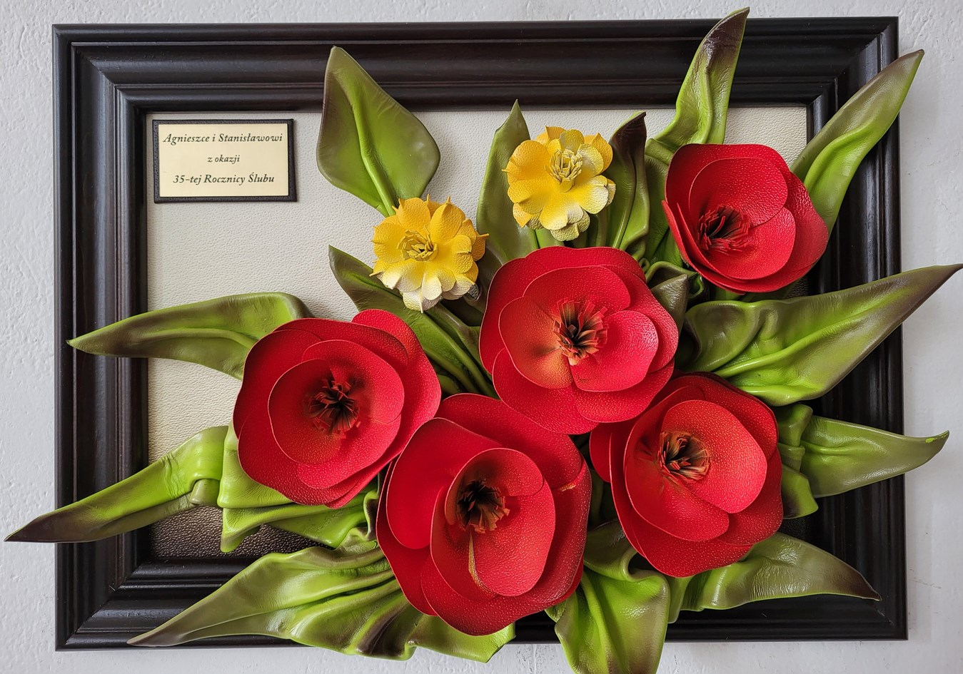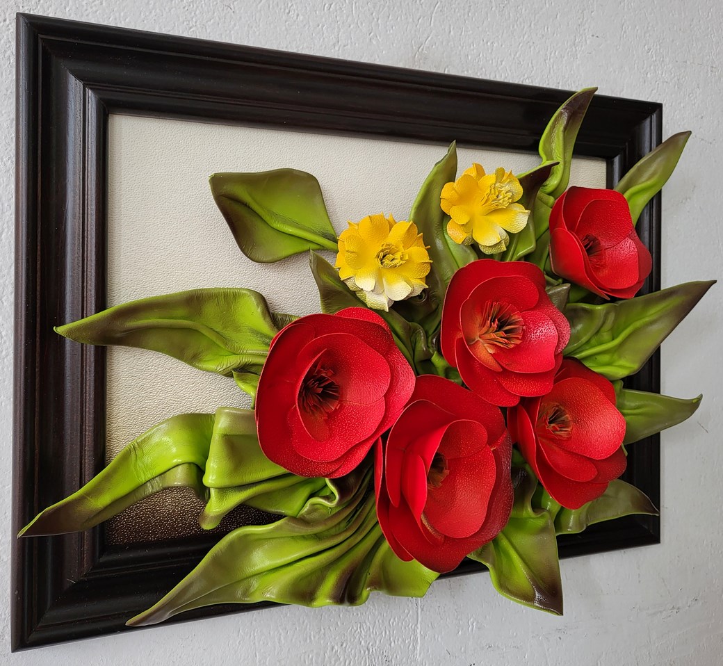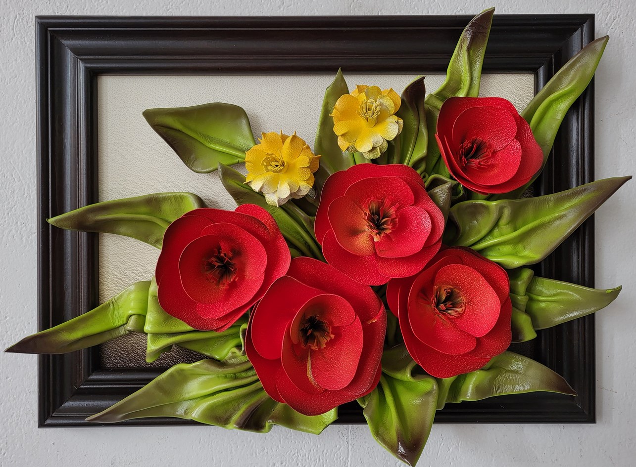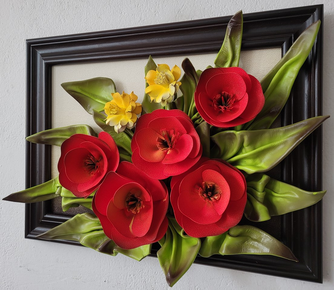 Obraz na 35-tą Rocznicę Ślubu - piękny bukiet ze skóry "Czerwone Maki"