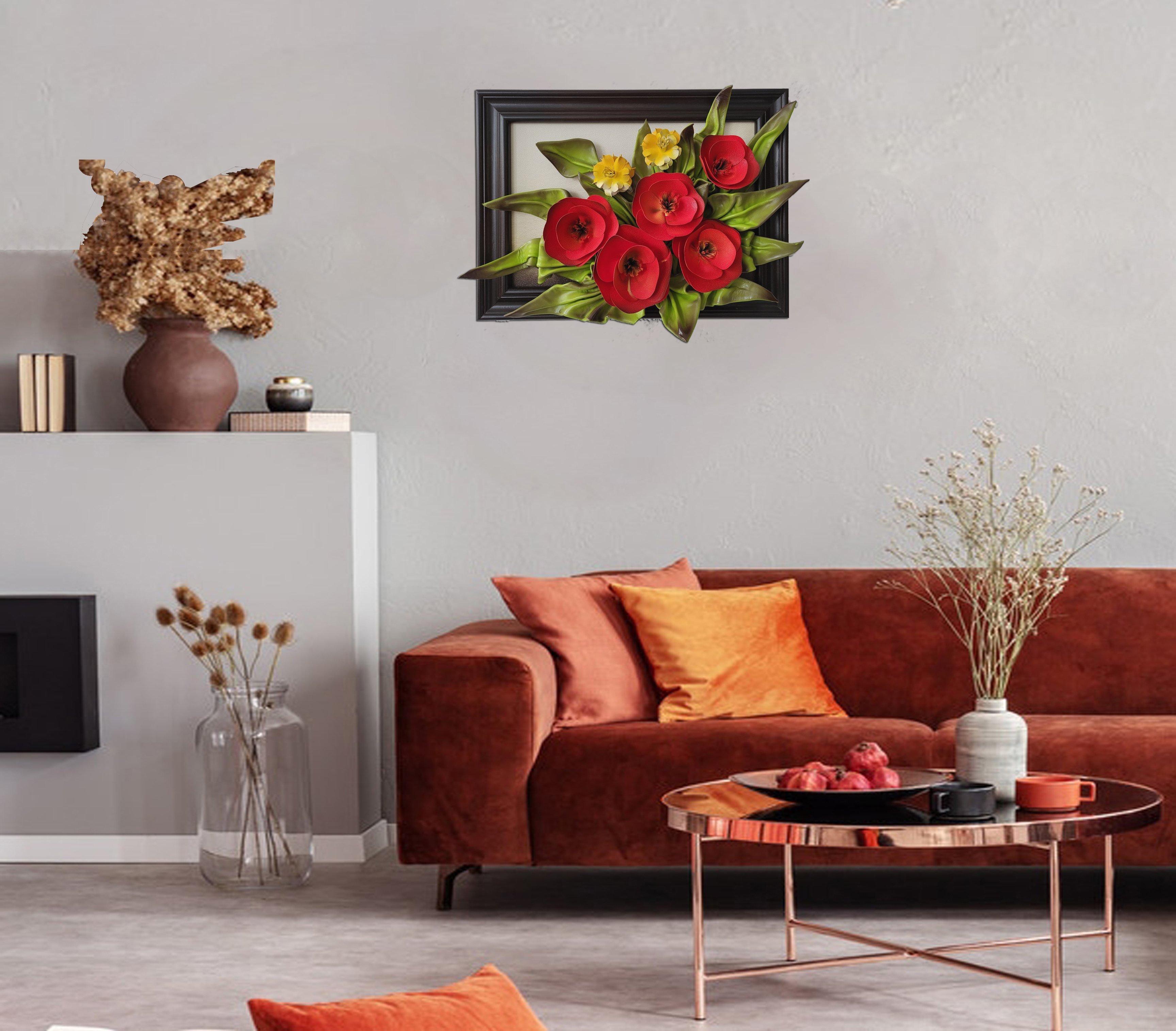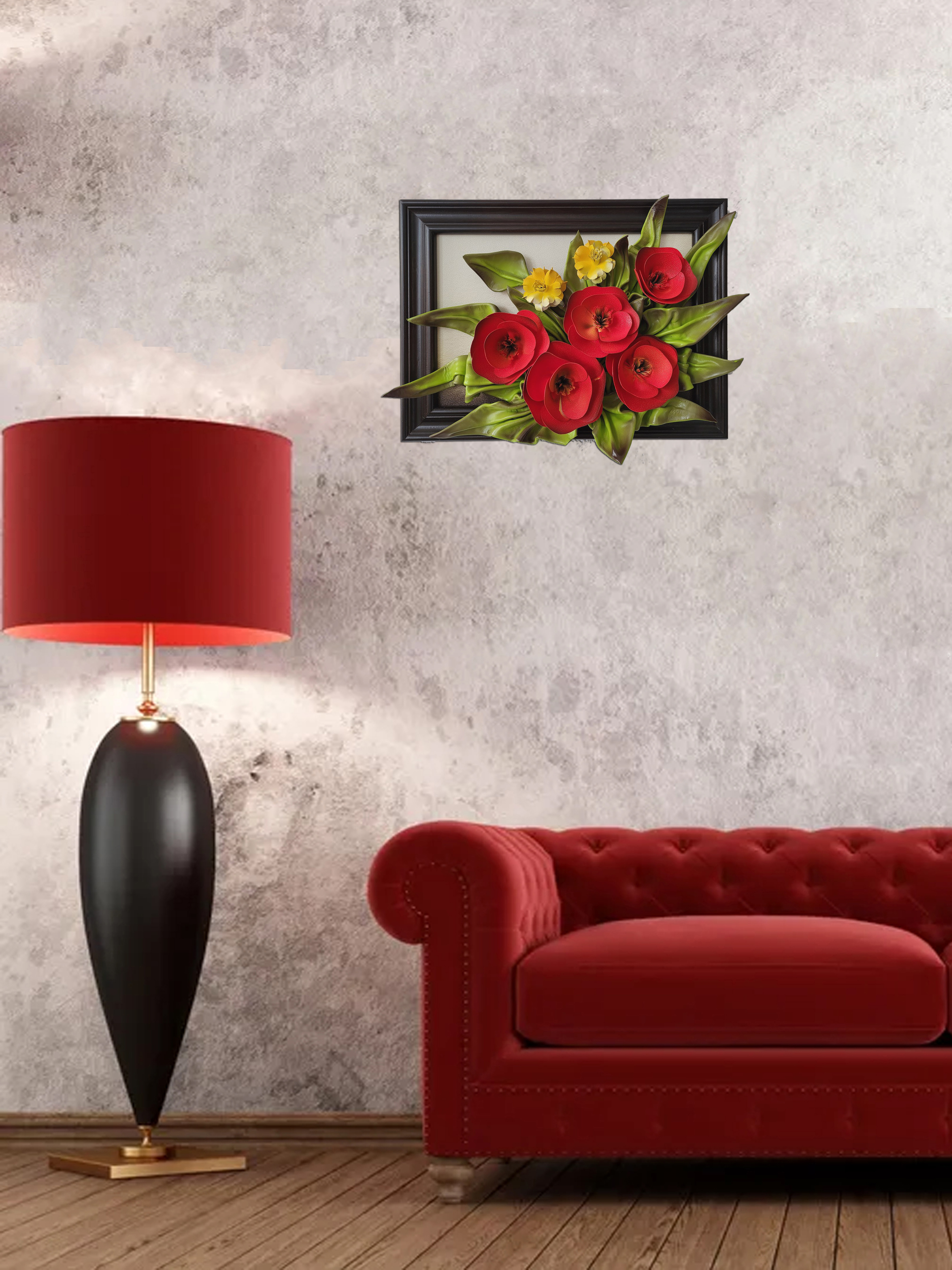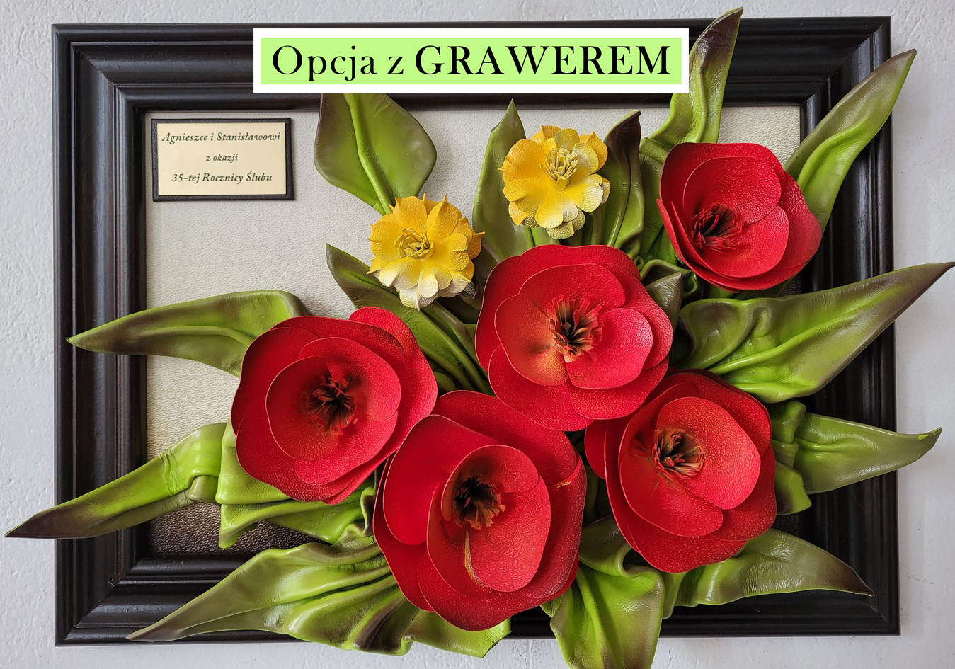 Obraz na 35-tą Rocznicę Ślubu - piękny bukiet ze skóry "Czerwone Maki"