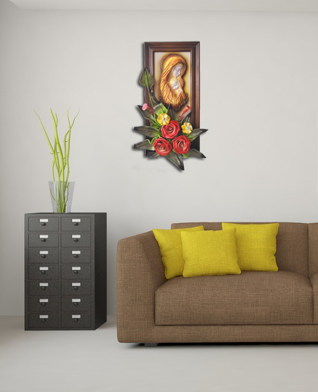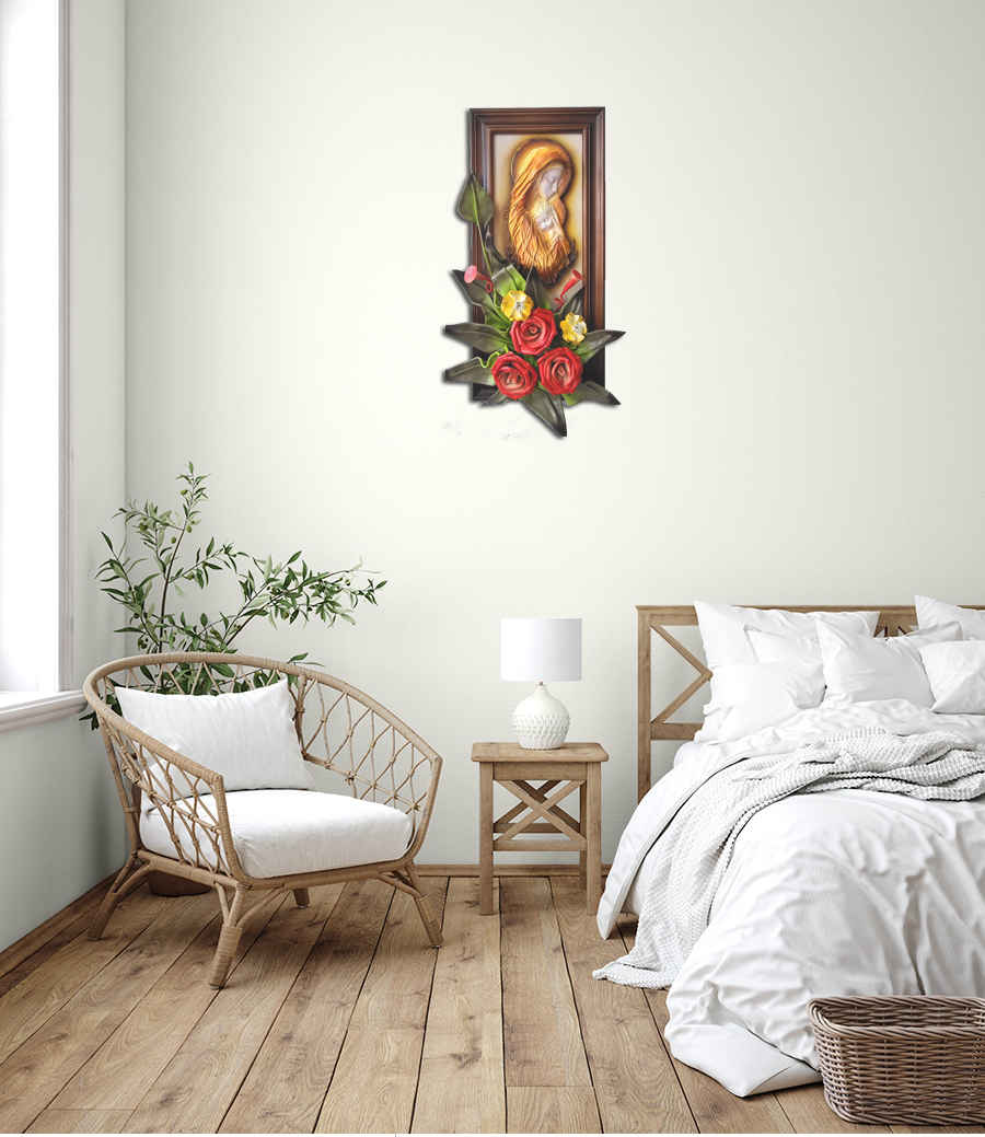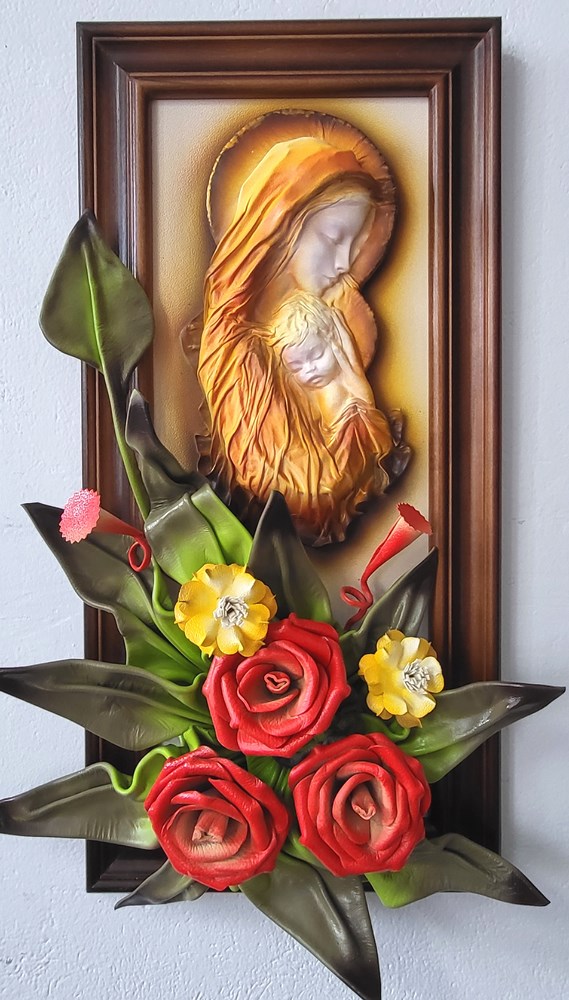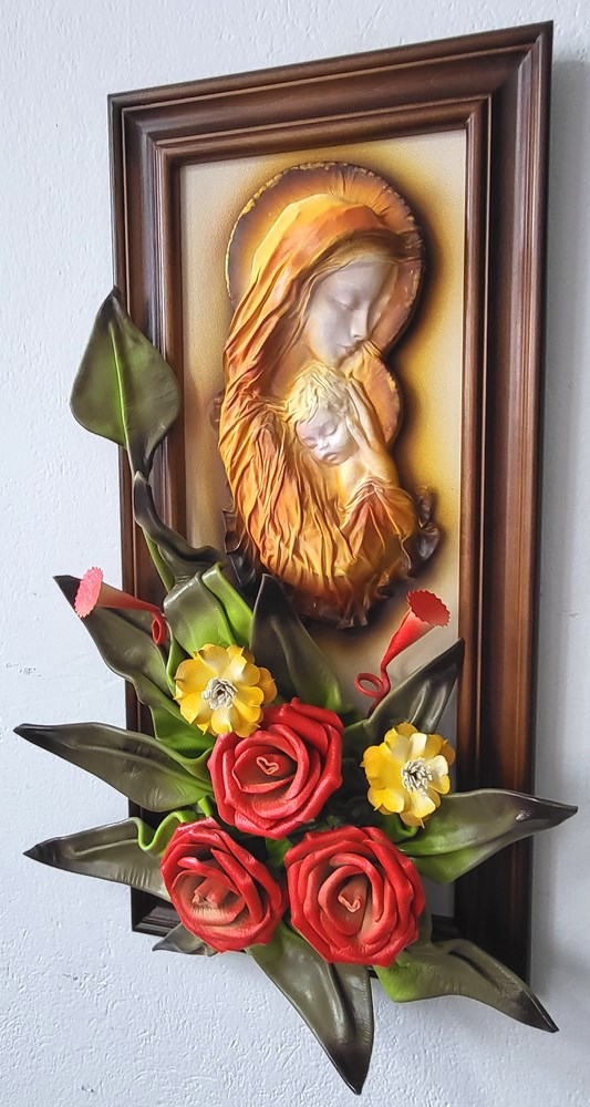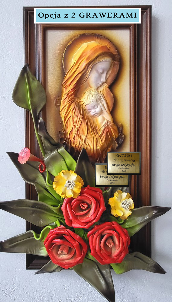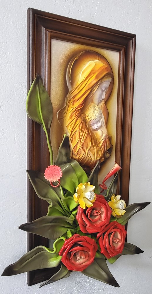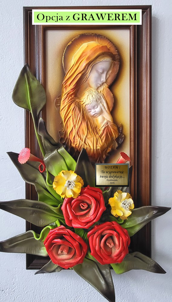 Obraz na prezent - MATKA BOŻA - czerwone róże ze skóry - RĘKODZIEŁO