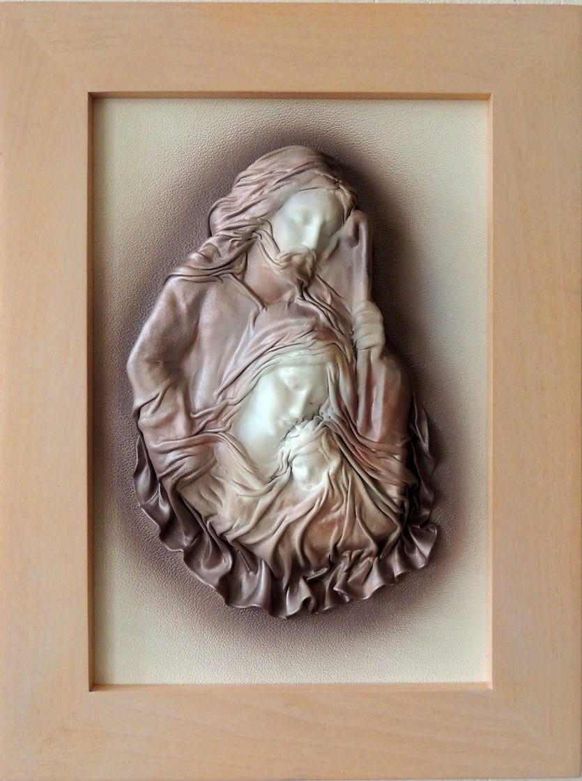 Obraz ze skóry z Świętą Rodziną.