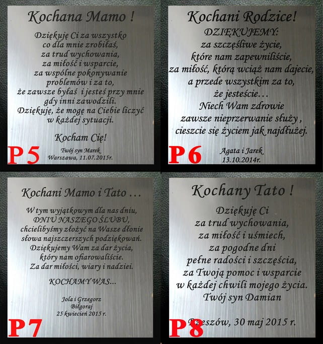 Wygrawerujemy twoją indywidualną dedykację,możesz wybrać jedną z naszych dedykacji, dodać dopisek itp.