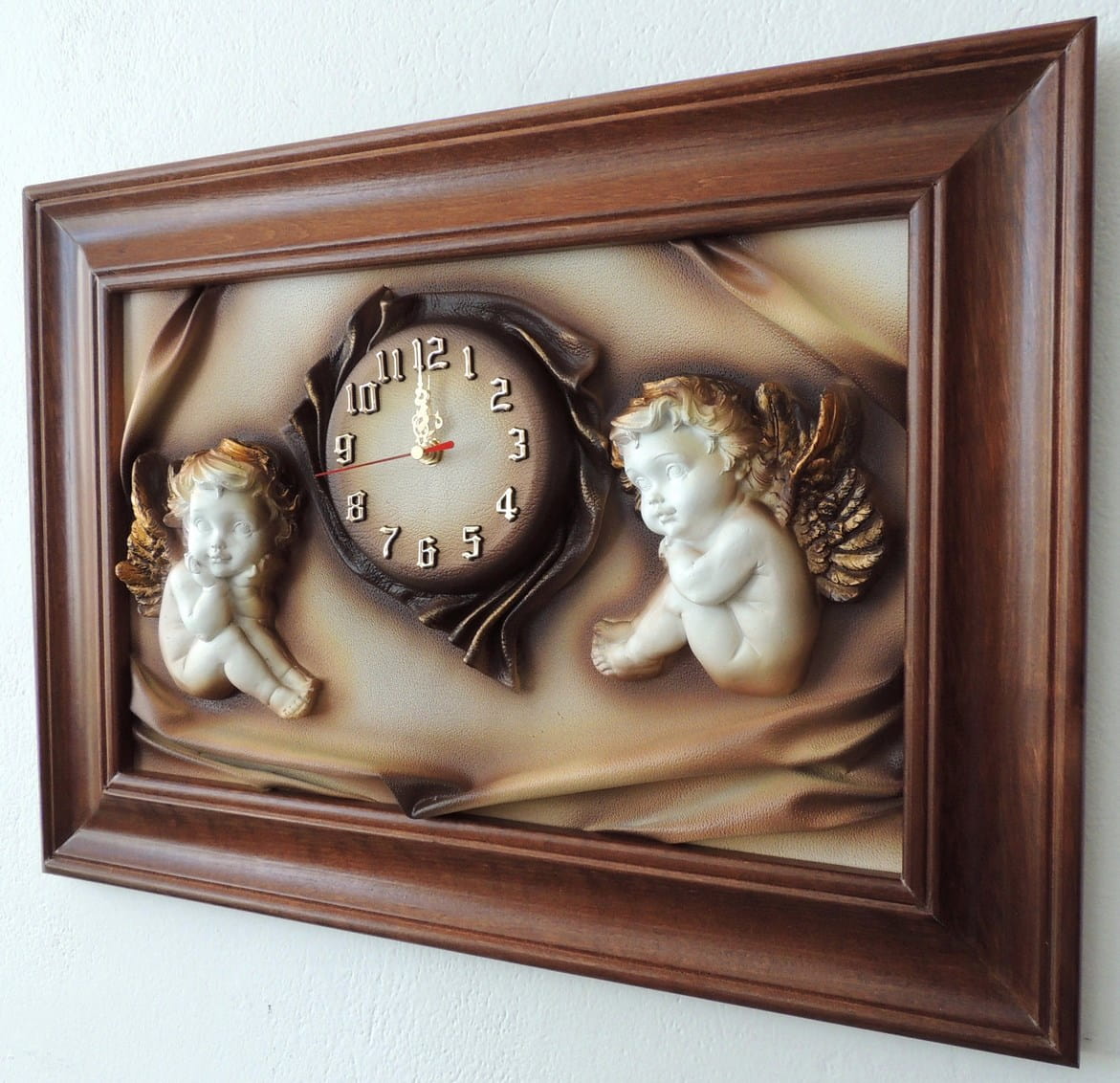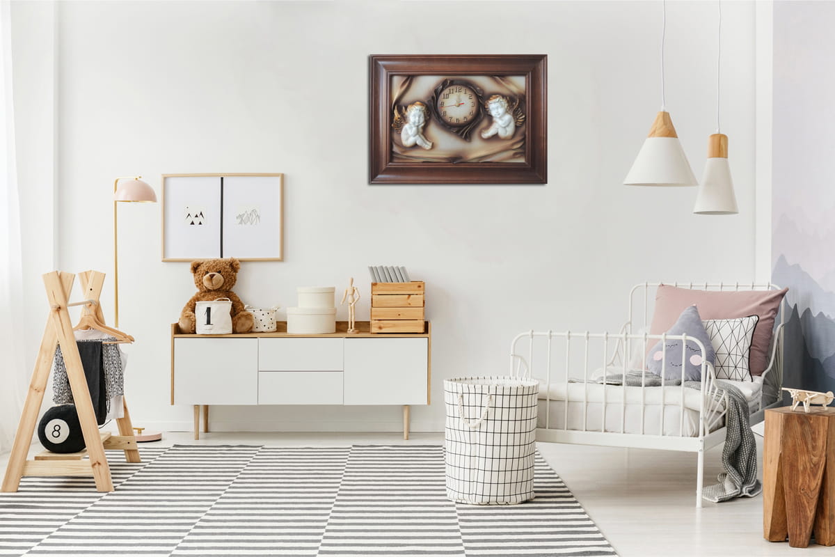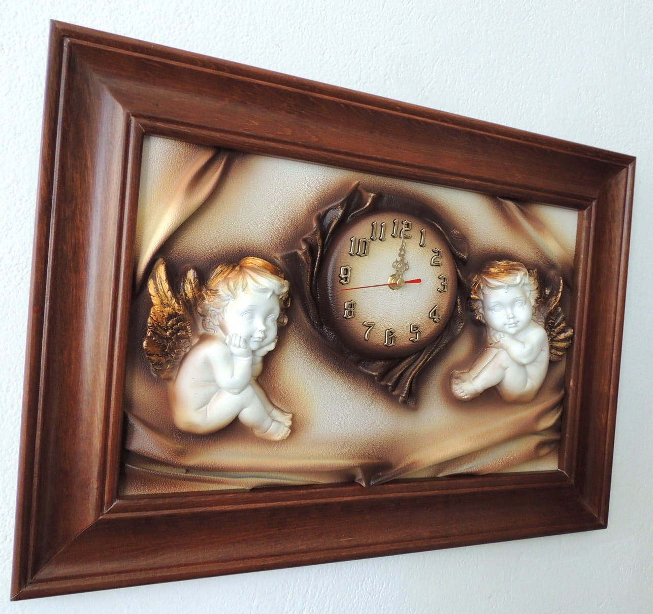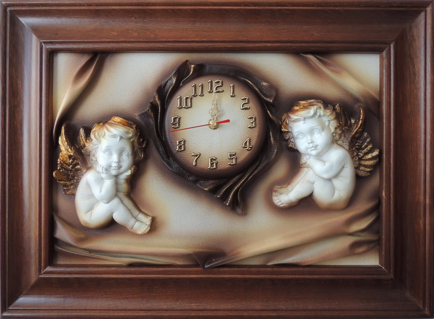 Obraz na prezent dla dziecka z zegarem i aniołkami - Rękodzieło - A5Z-2