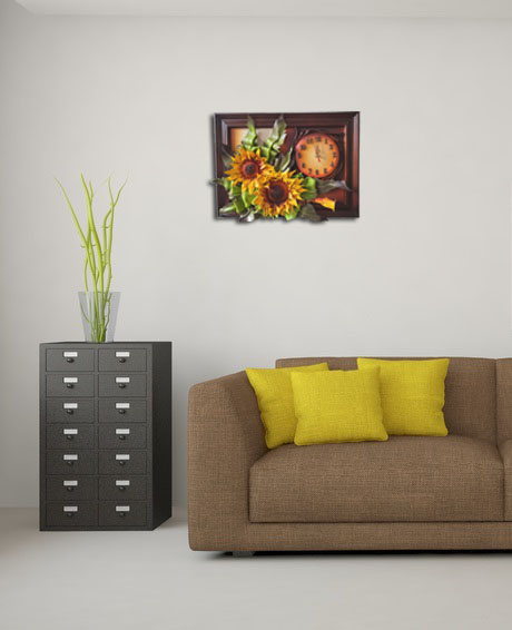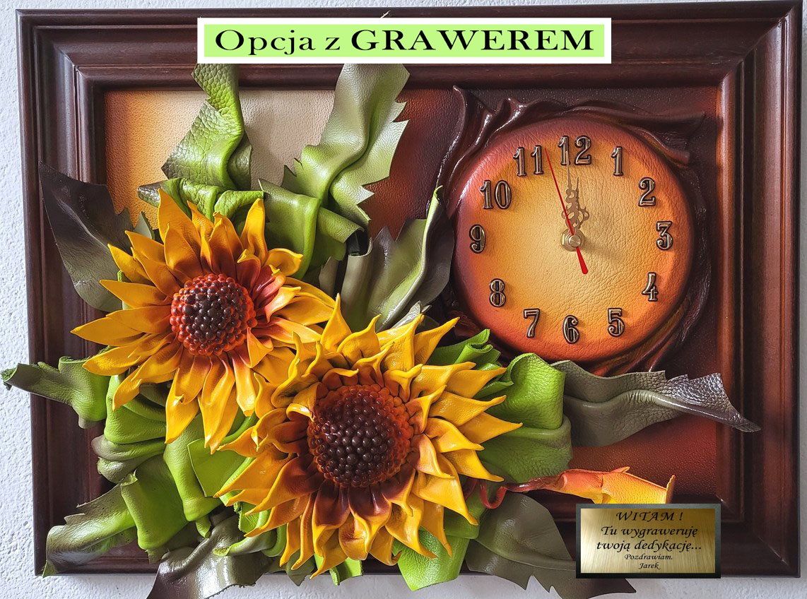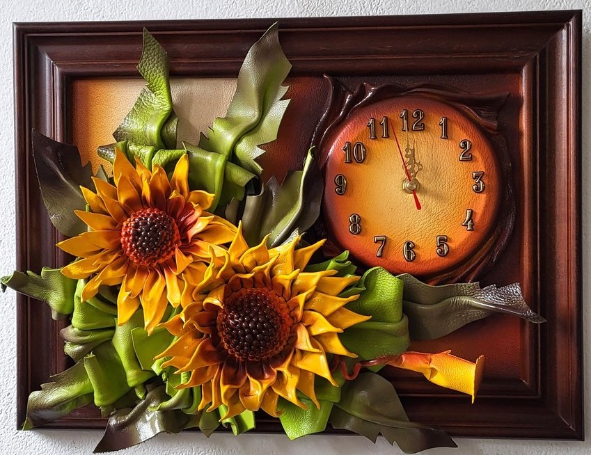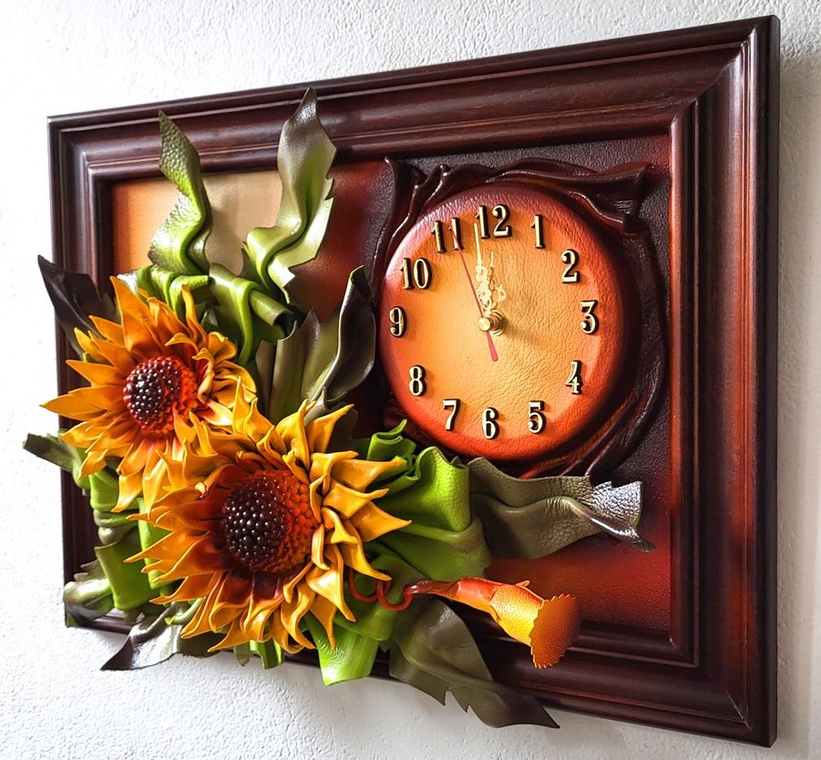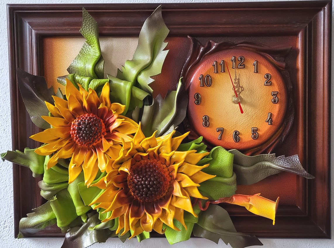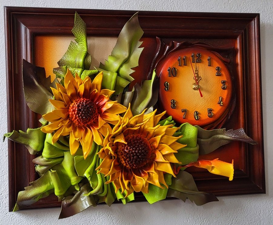 Obraz ze słonczecznikami ze skóry