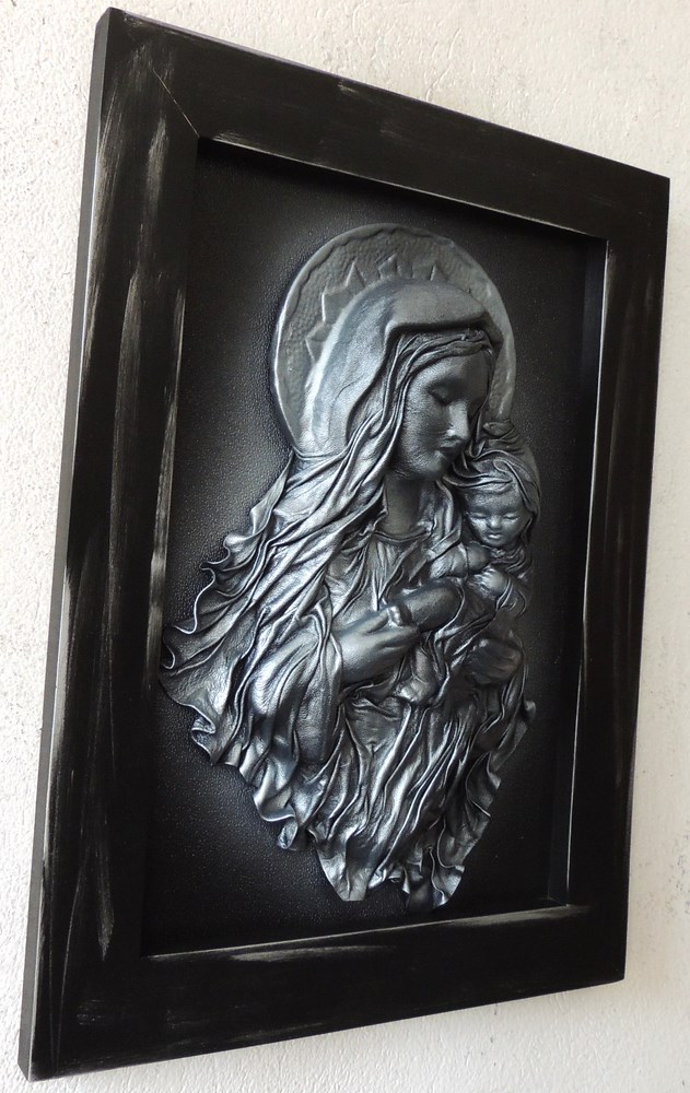 Obraz z płaskorzeźbą Maryi - Czarna Madonna