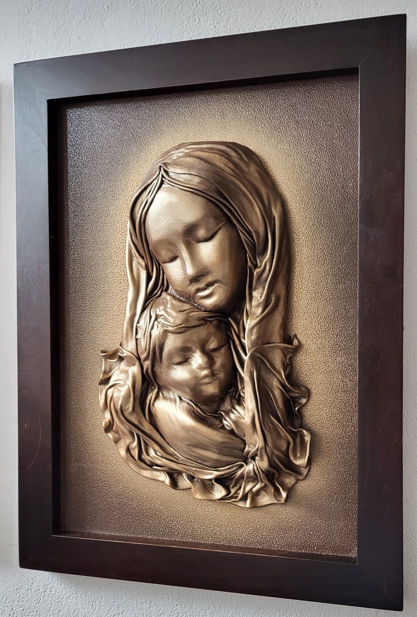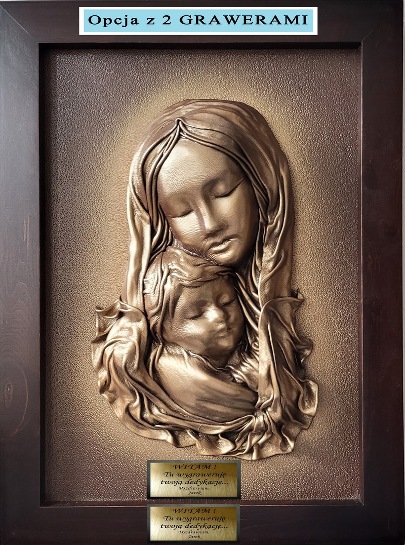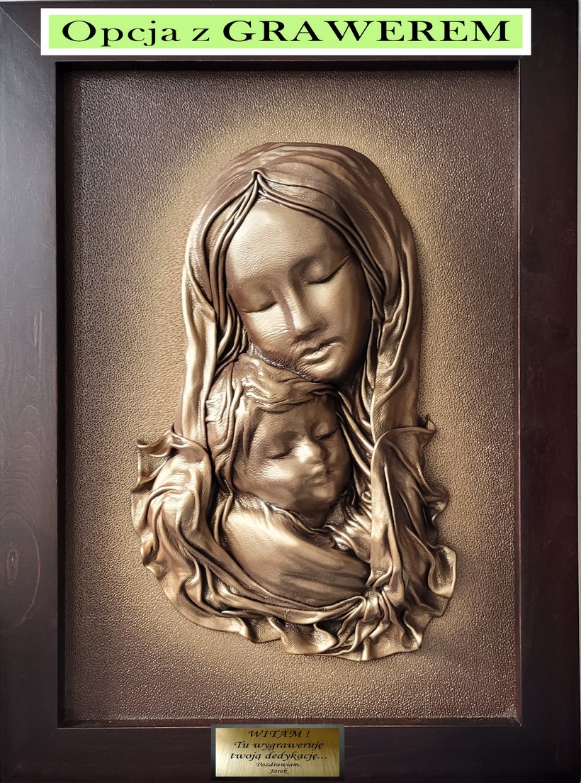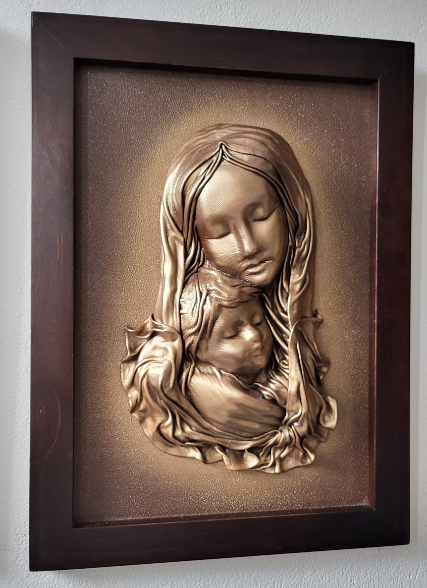 Obraz na prezent ślubny MATKA BOSKA rękodzieło ze skóry
