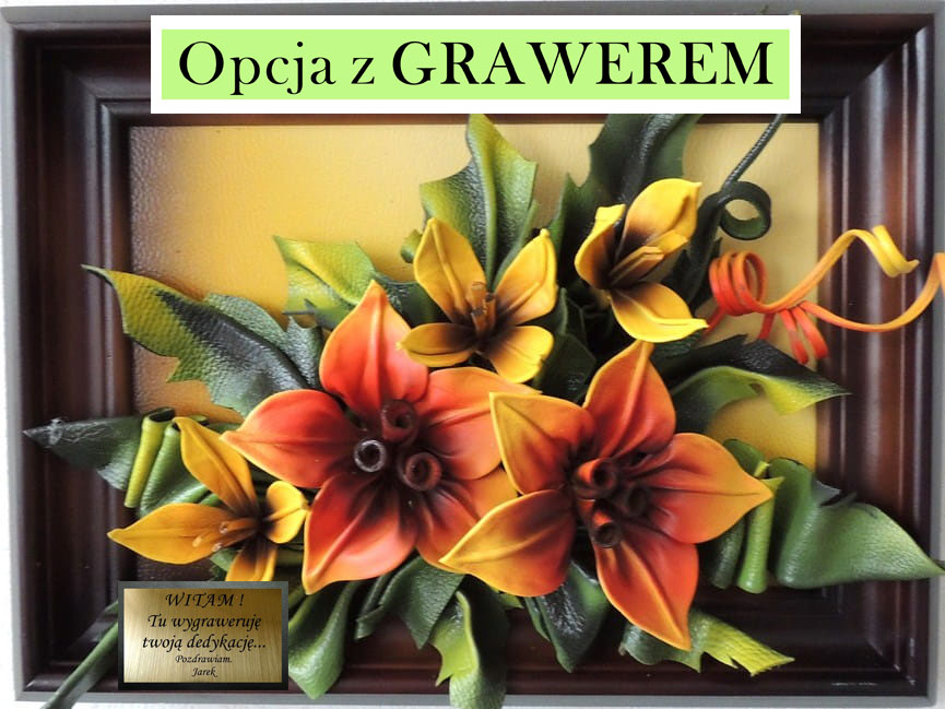 Obraz na prezent urodzinowy - jubileusz lub emeryturę - Lilie ze skóry - RĘKODZIEŁO