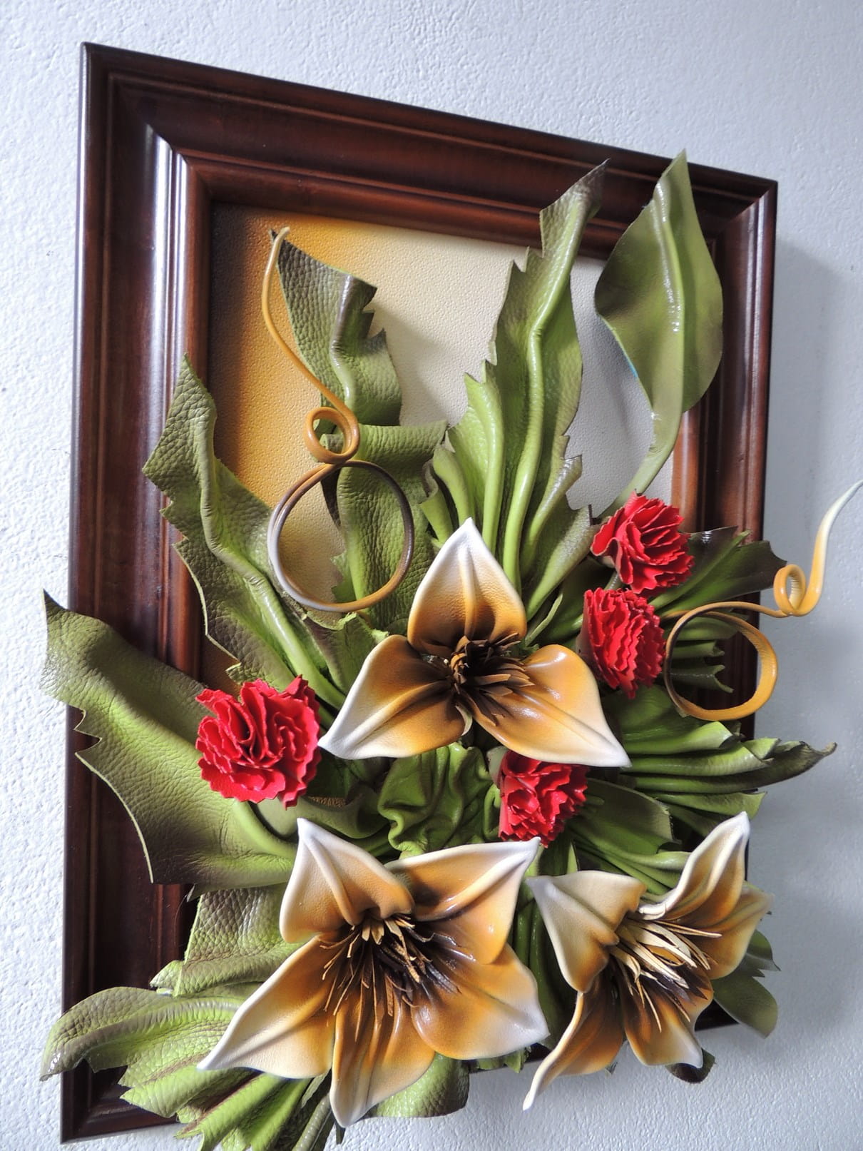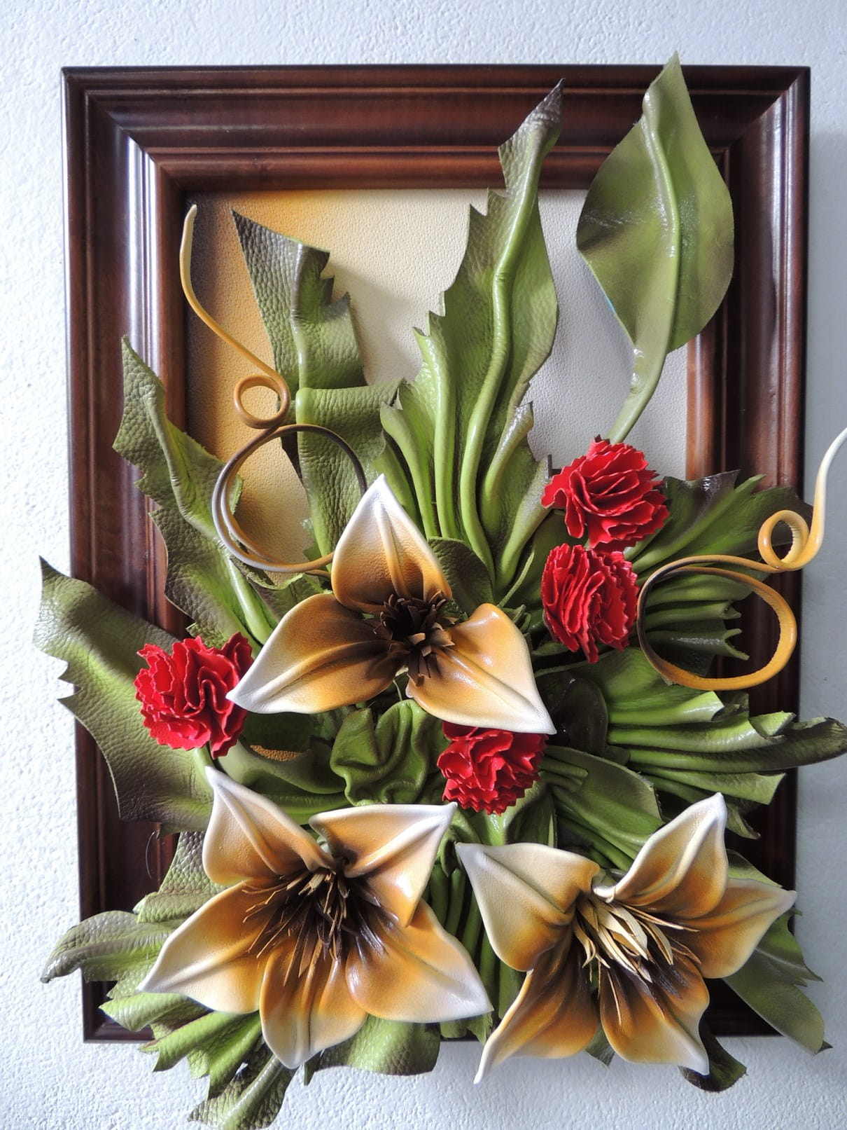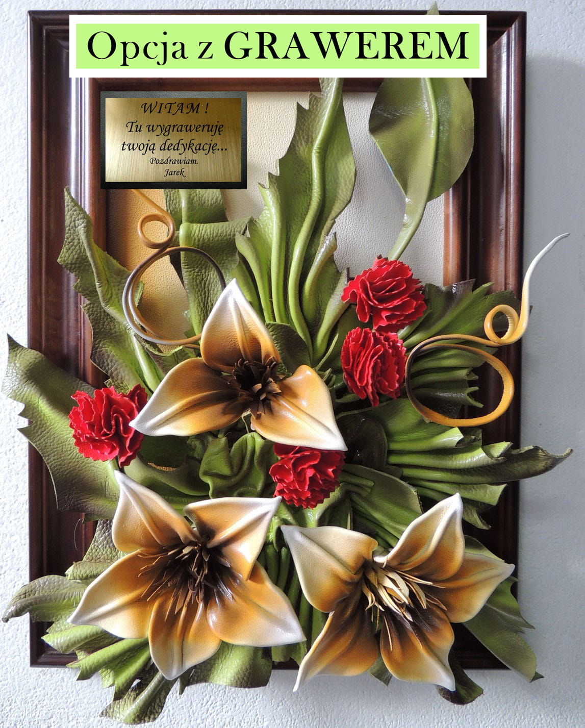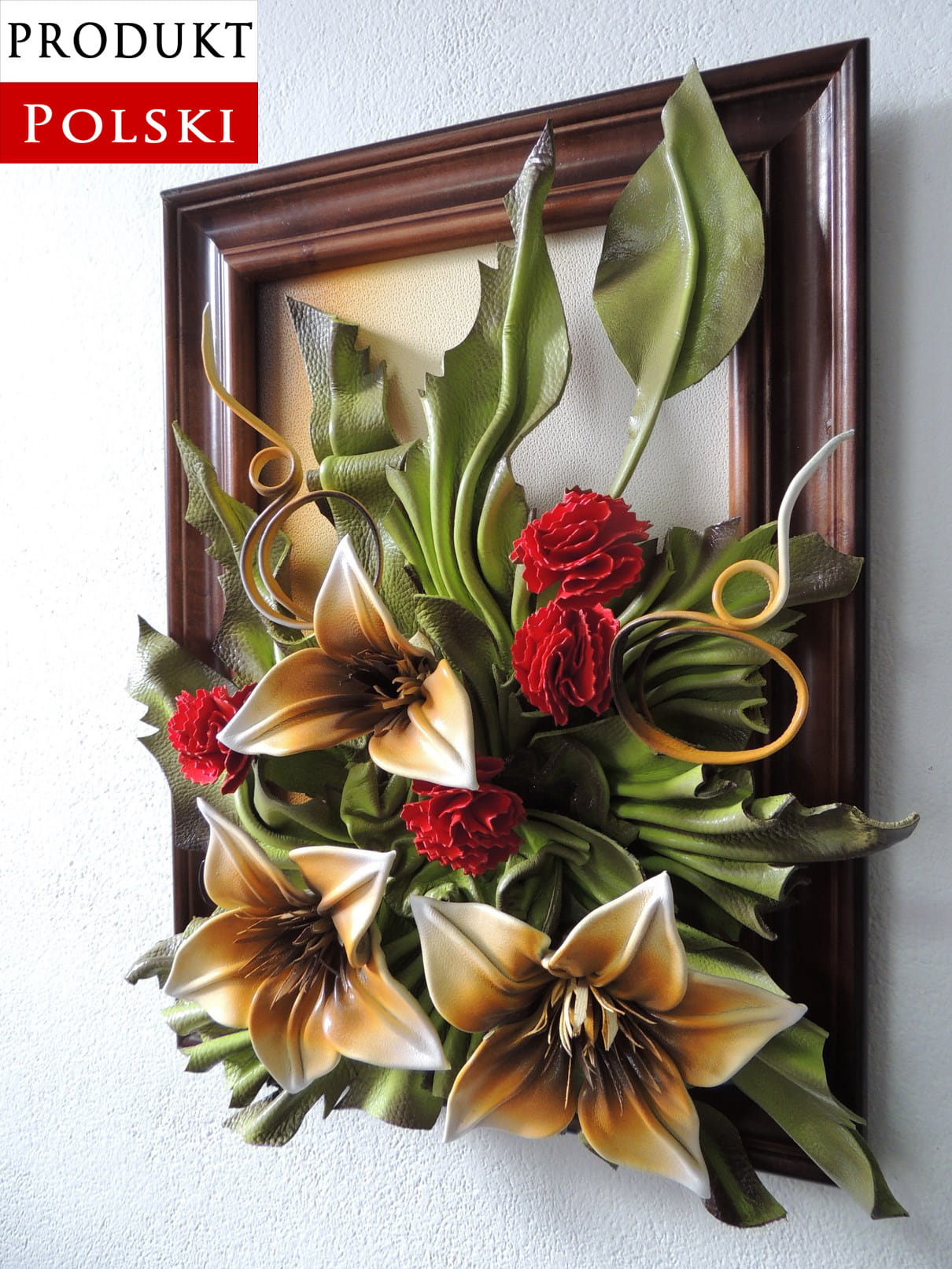 Obraz z Liliami i czerwonymi goździkami - drewniana rama - Prezent na Jubileusz, urodziny