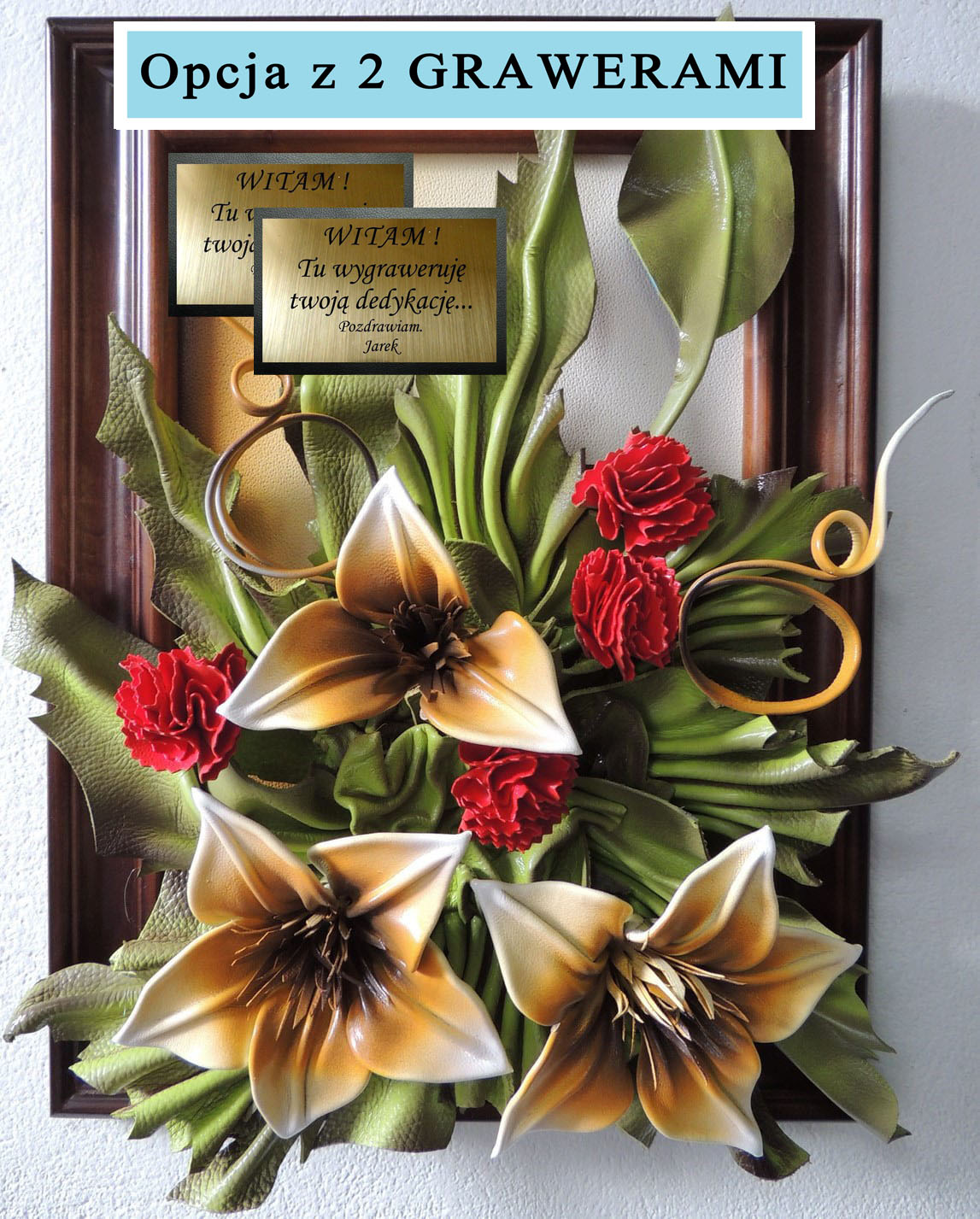 Jeśli chcesz dwie dedykacje - 2 grawery na tabliczce z przodu i na odwrocie obrazu wybierz pole