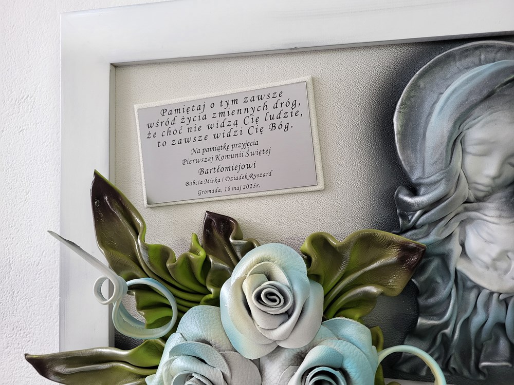 Na ramie obrazu lub na odwrocie zamieszczamy drugą tabliczkę z grawerem.