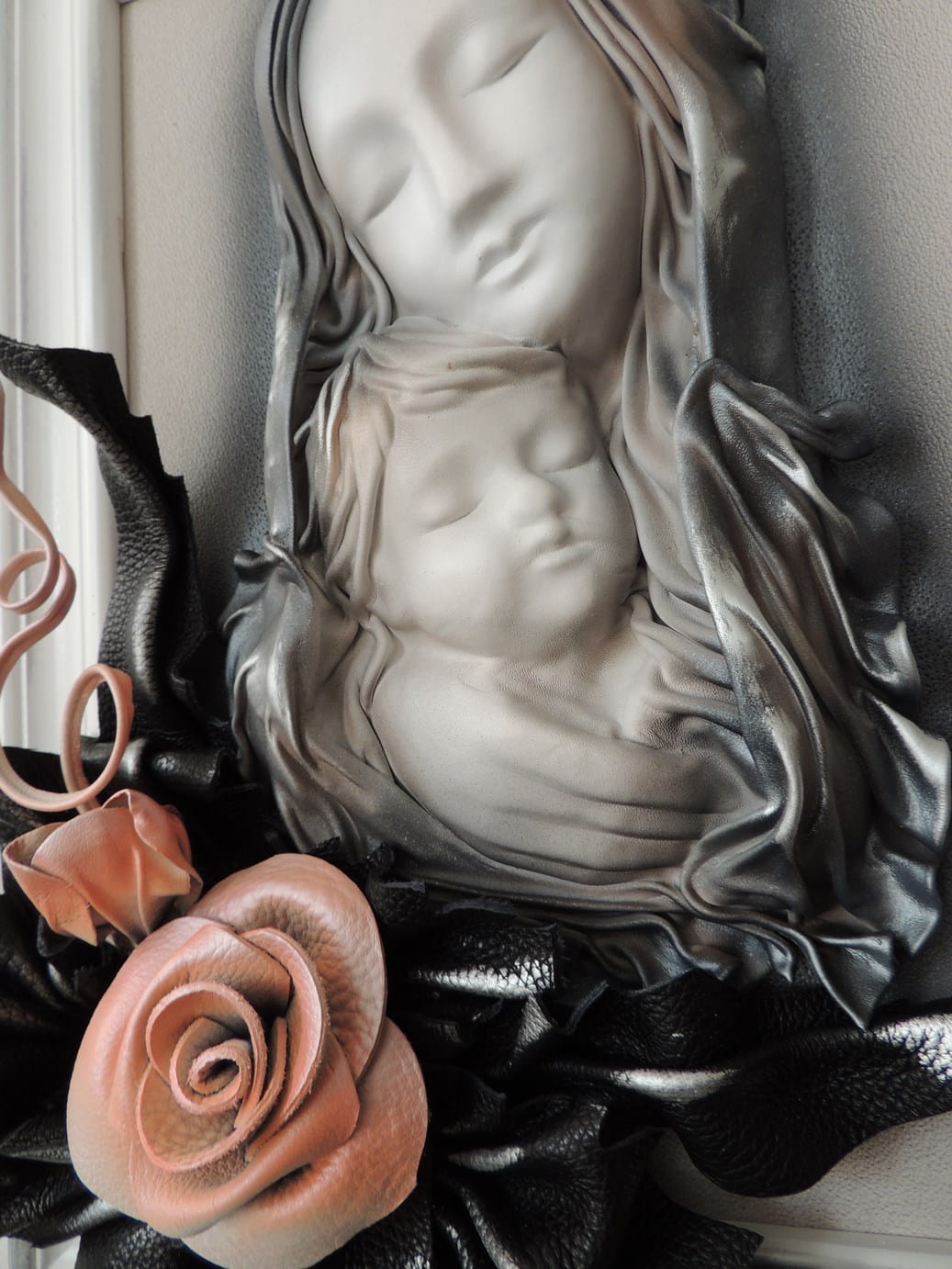 - Obraz z Świętą Rodziną w kolorystyce brąz - bronzo - skóra naturalna - SR5-19