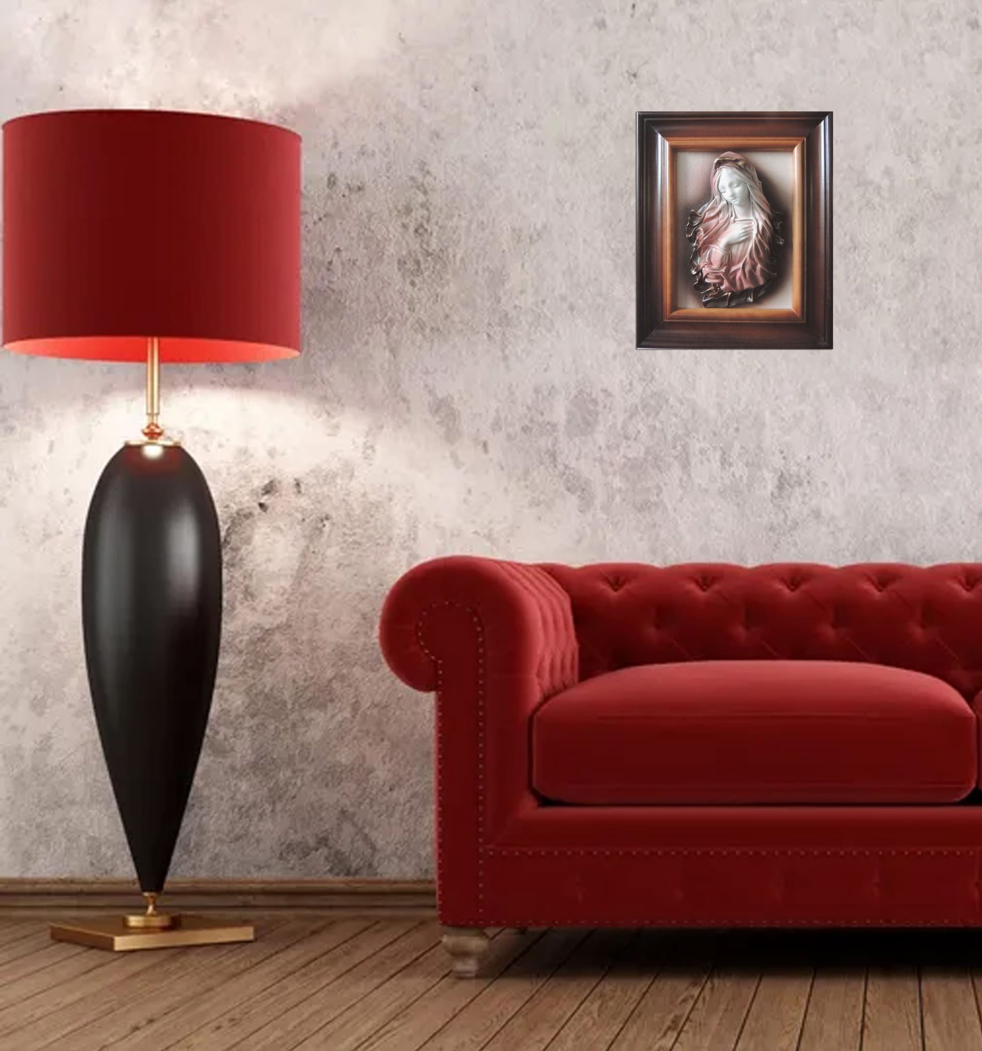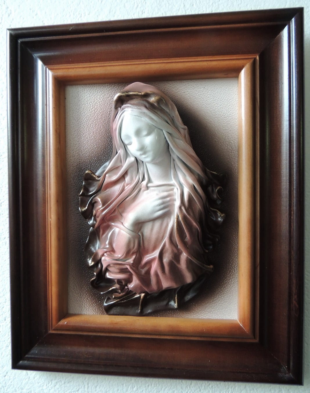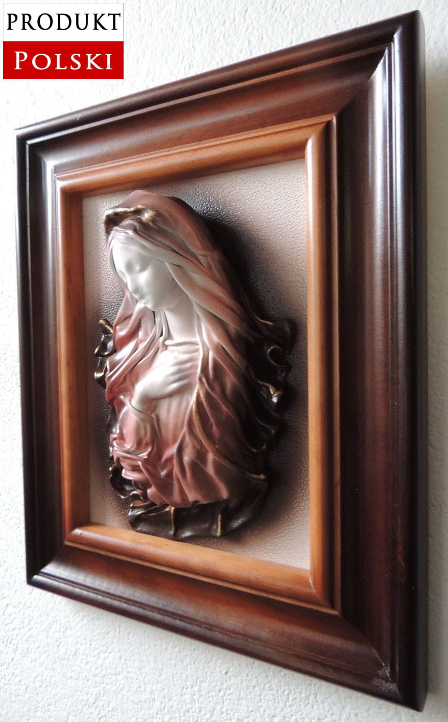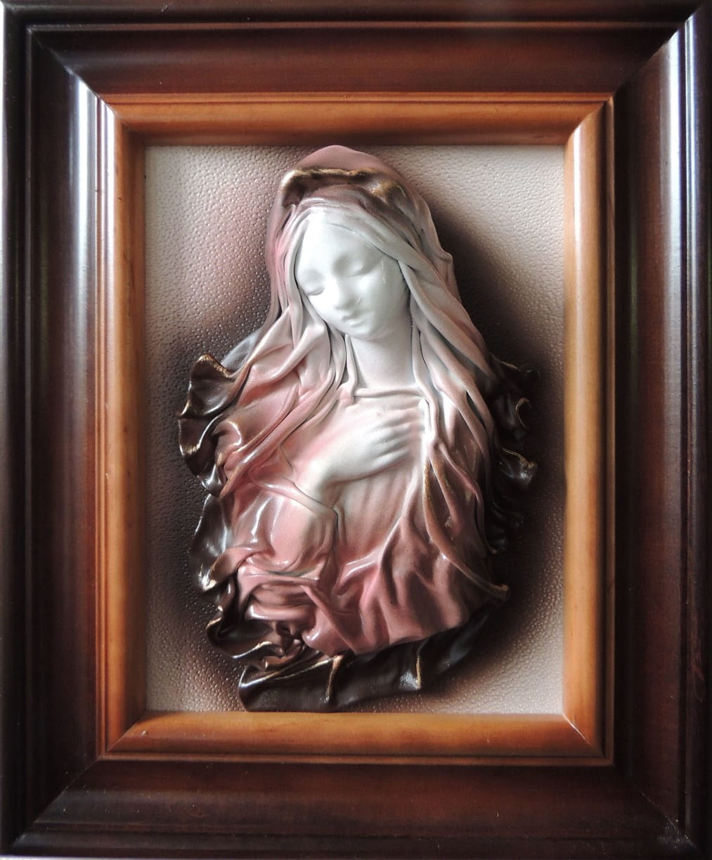 Obraz z Maryją - rękodzieło ze skóry - w drewnianej ramie - S1-2