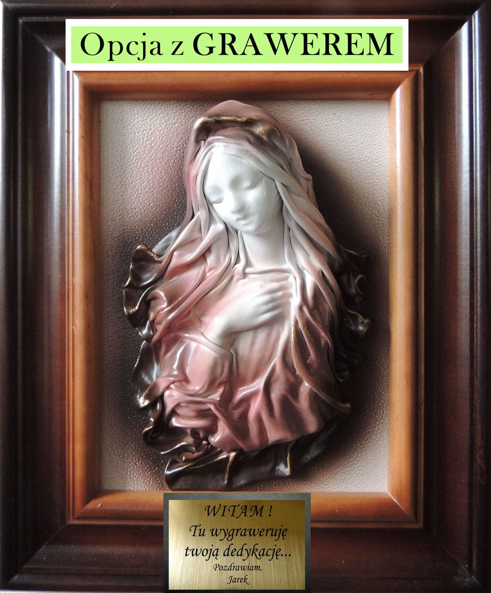 Na ramie obrazu zamieszczamy 1 tabliczkę z grawerem,