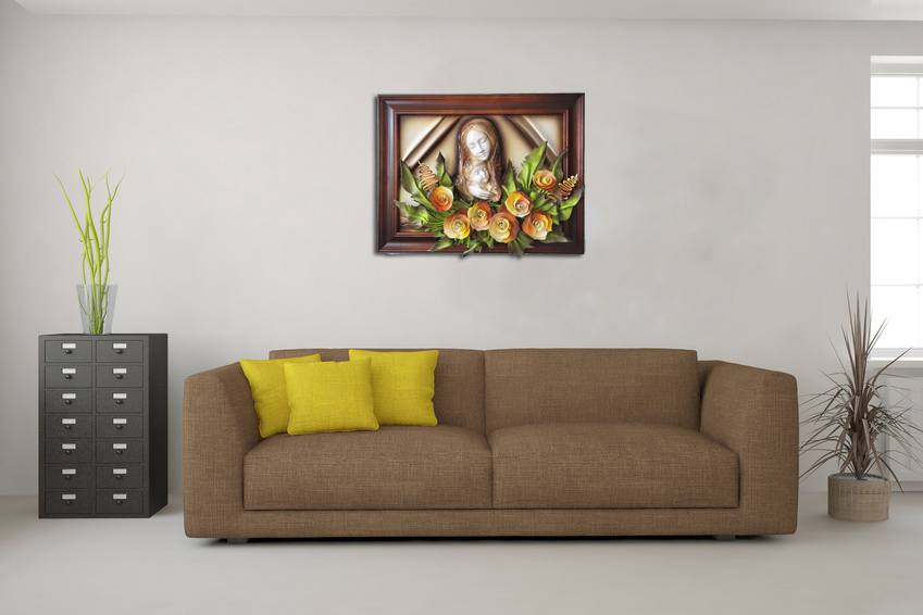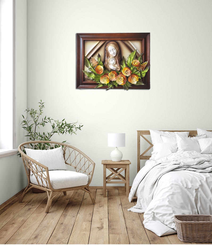 Obraz z płaskorzeźbą Maryji
