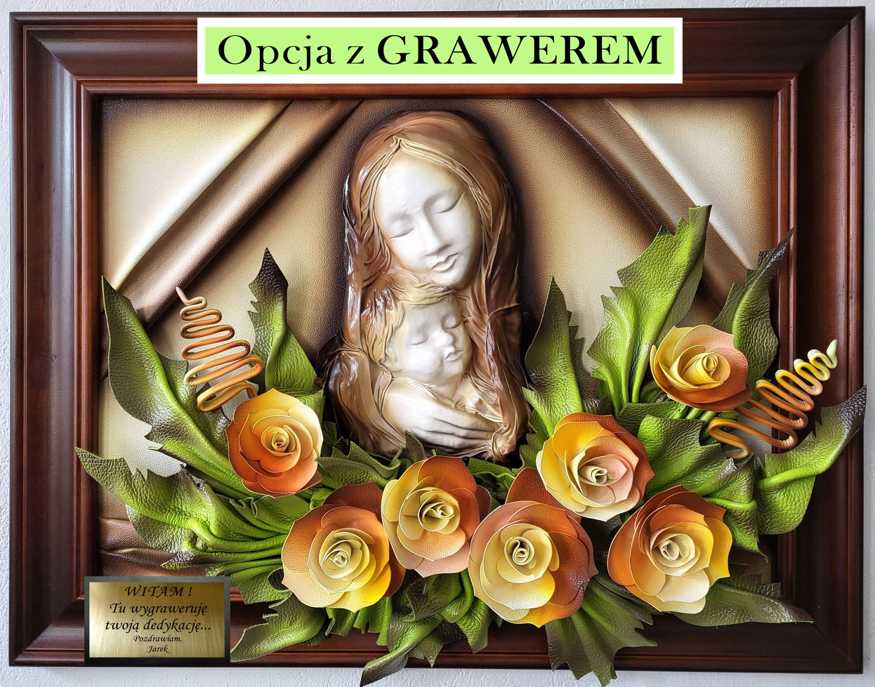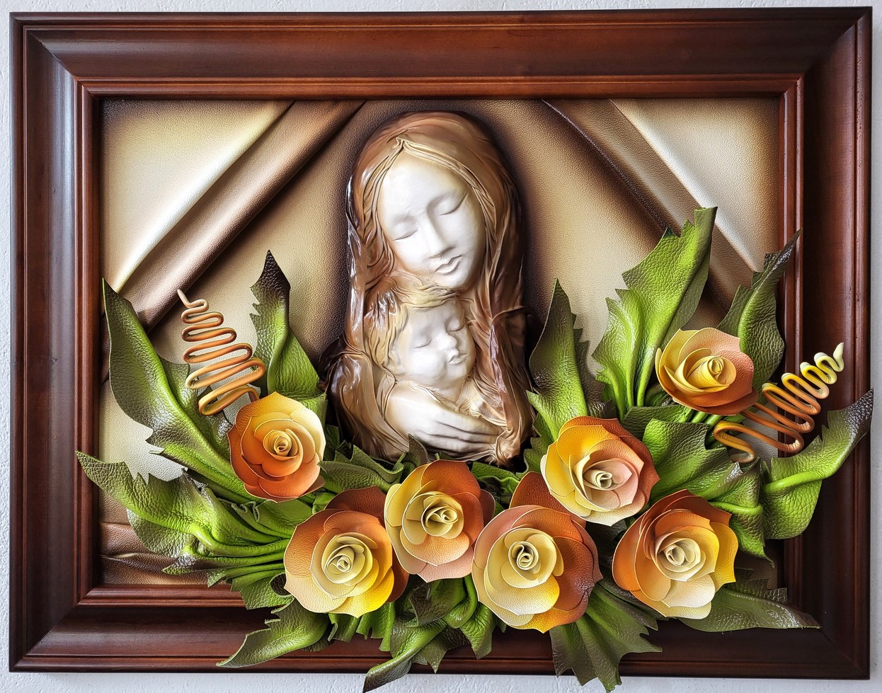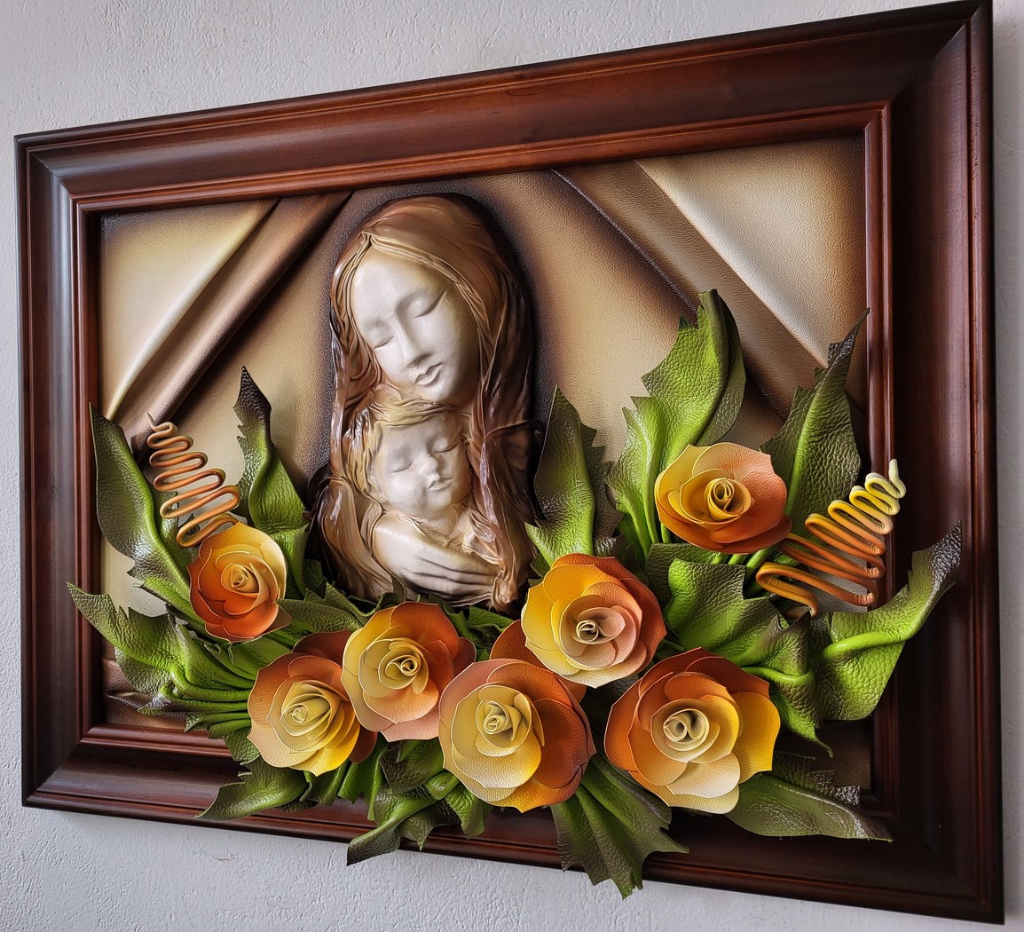 Obraz z Matką Bożą ze skóry - na prezent ślubny i inne okazje