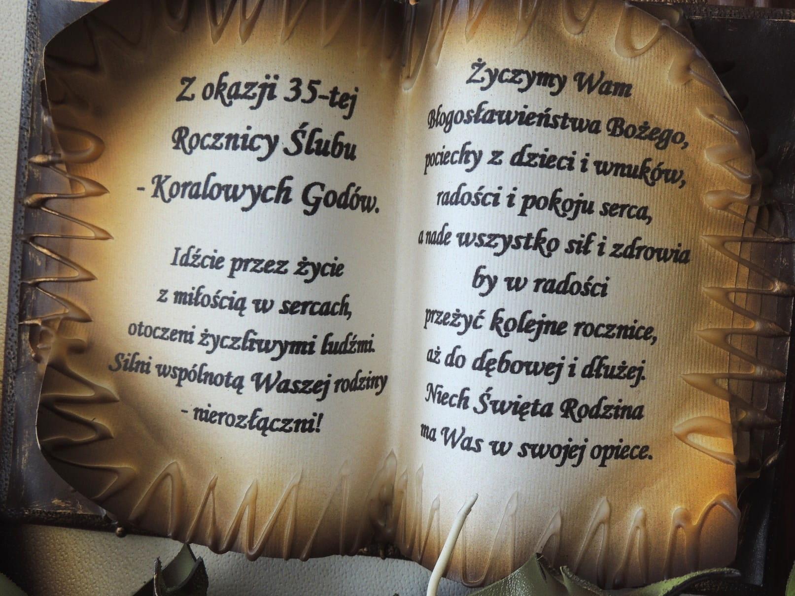 z zegarem i dedykacją na 35-tą Rocznicę Ślubu