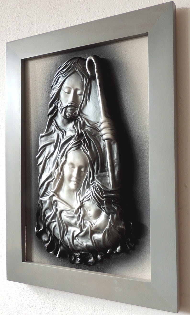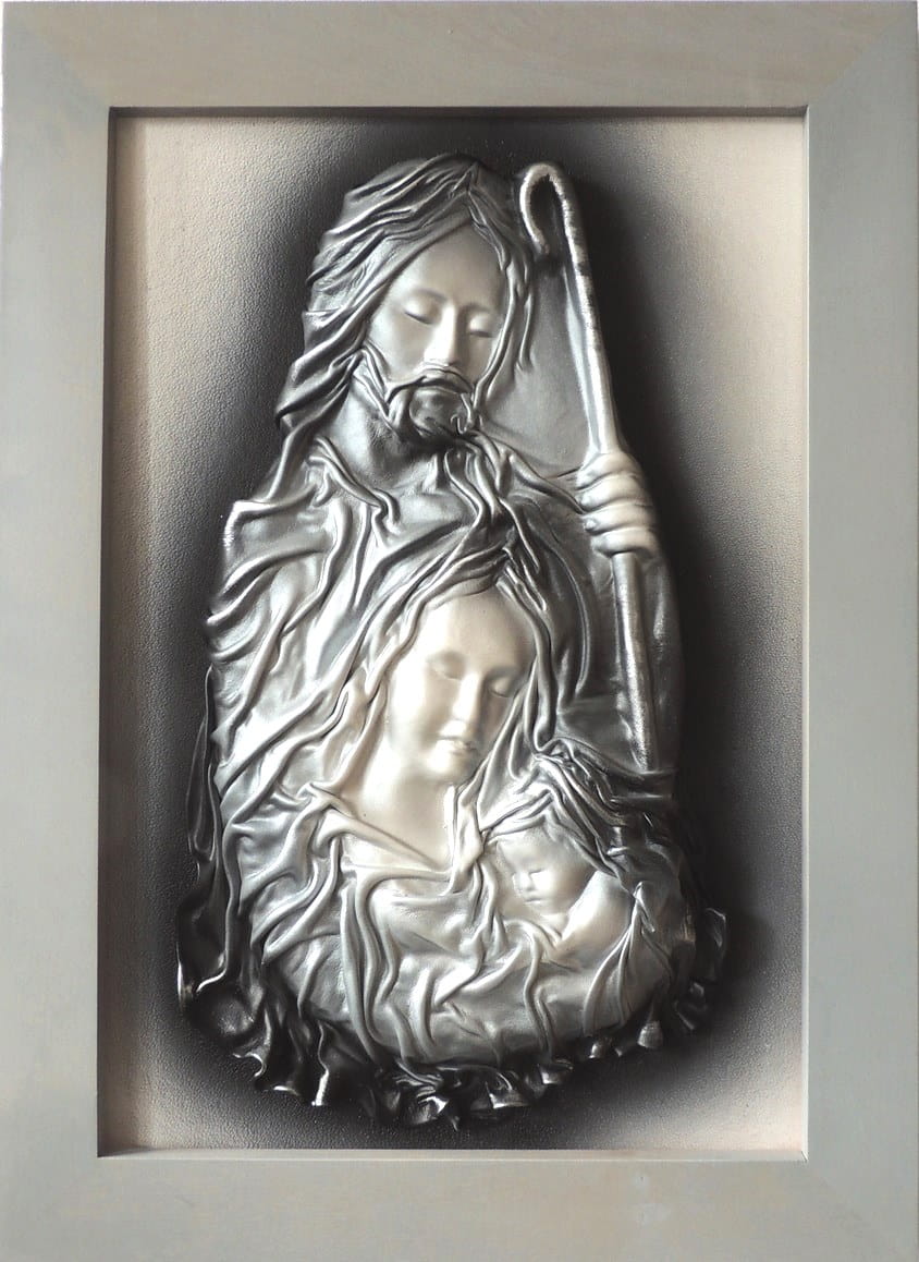 - Obraz z Świętą Rodziną w kolorystyce brąz - bronzo - skóra naturalna - SR5-19