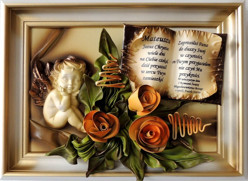 Obraz z aniołkiem i dedykacją na komunię - chrzest - 46x34cm - A3-8
