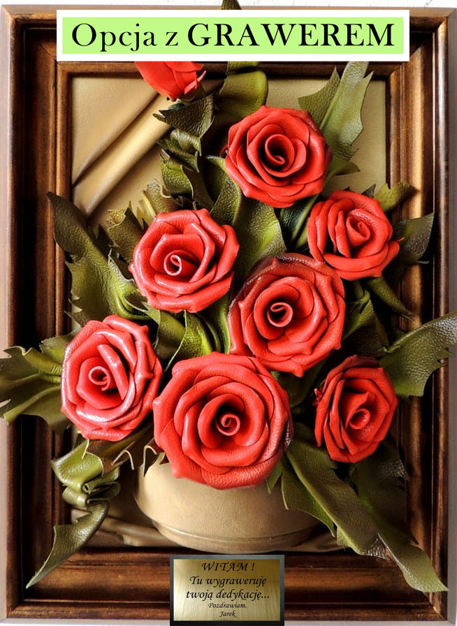 Obraz z bukietem czerwonych róż w pozłacanej ramie - prezent dla kobiety, mamy, babci
