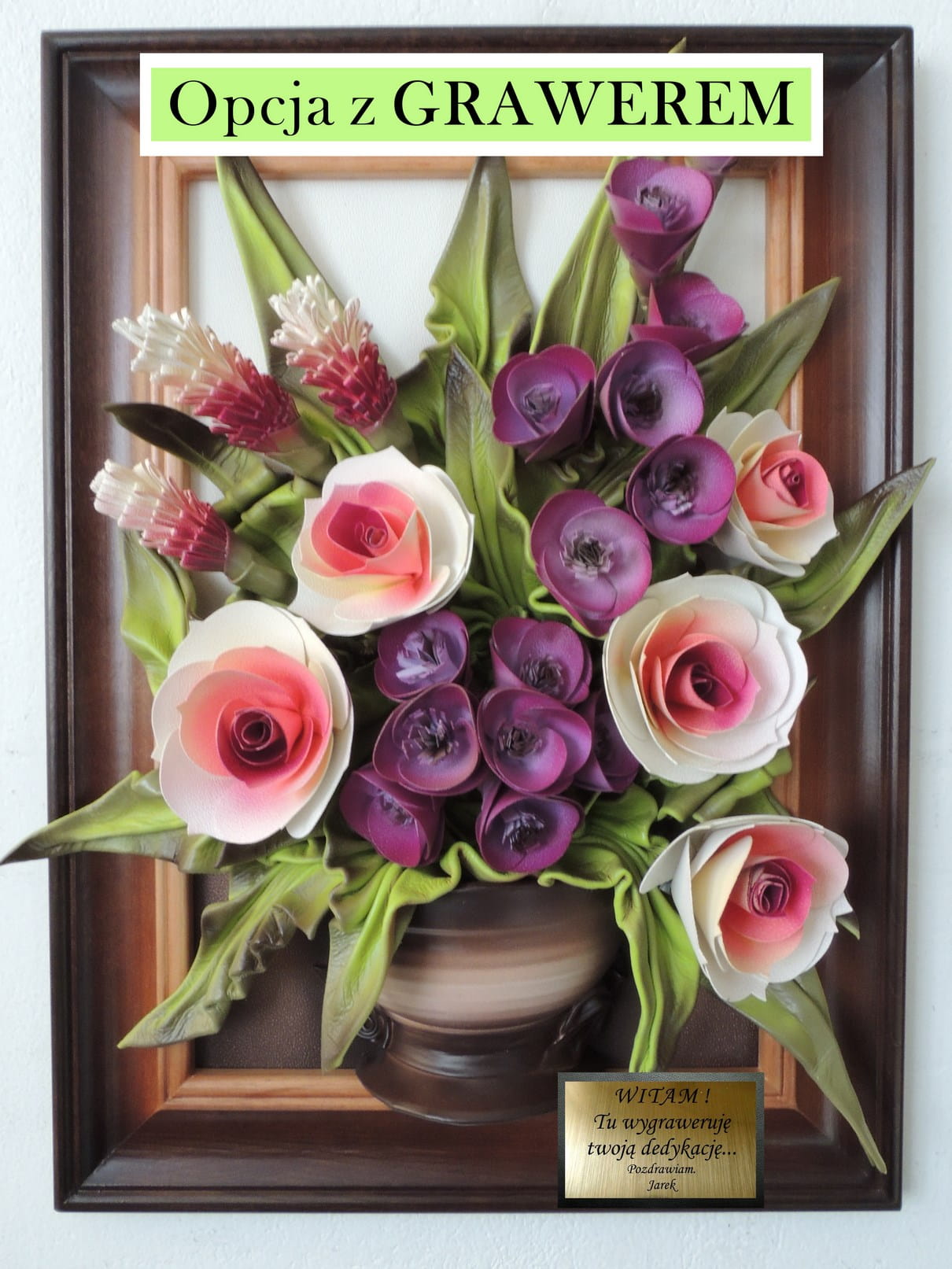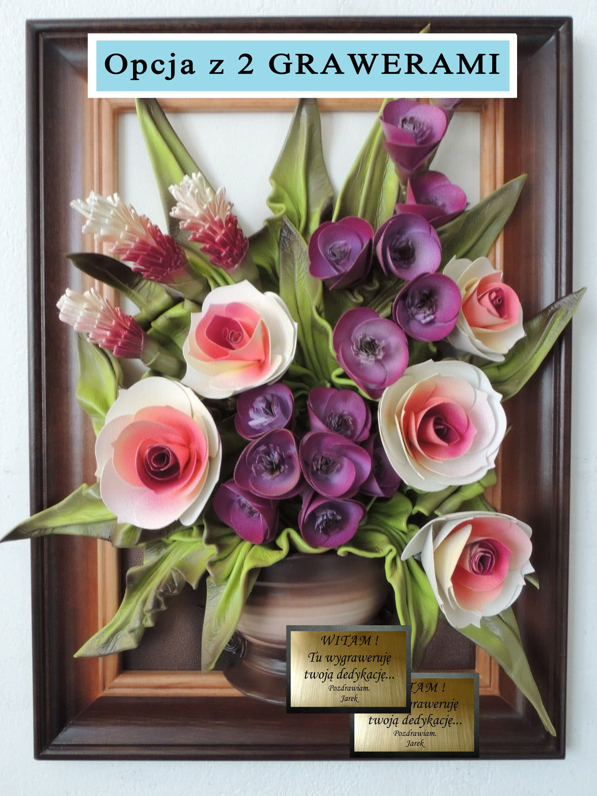 Jeśli chcesz dwie dedykacje - 2 grawery na tabliczce z przodu i na odwrocie obrazu