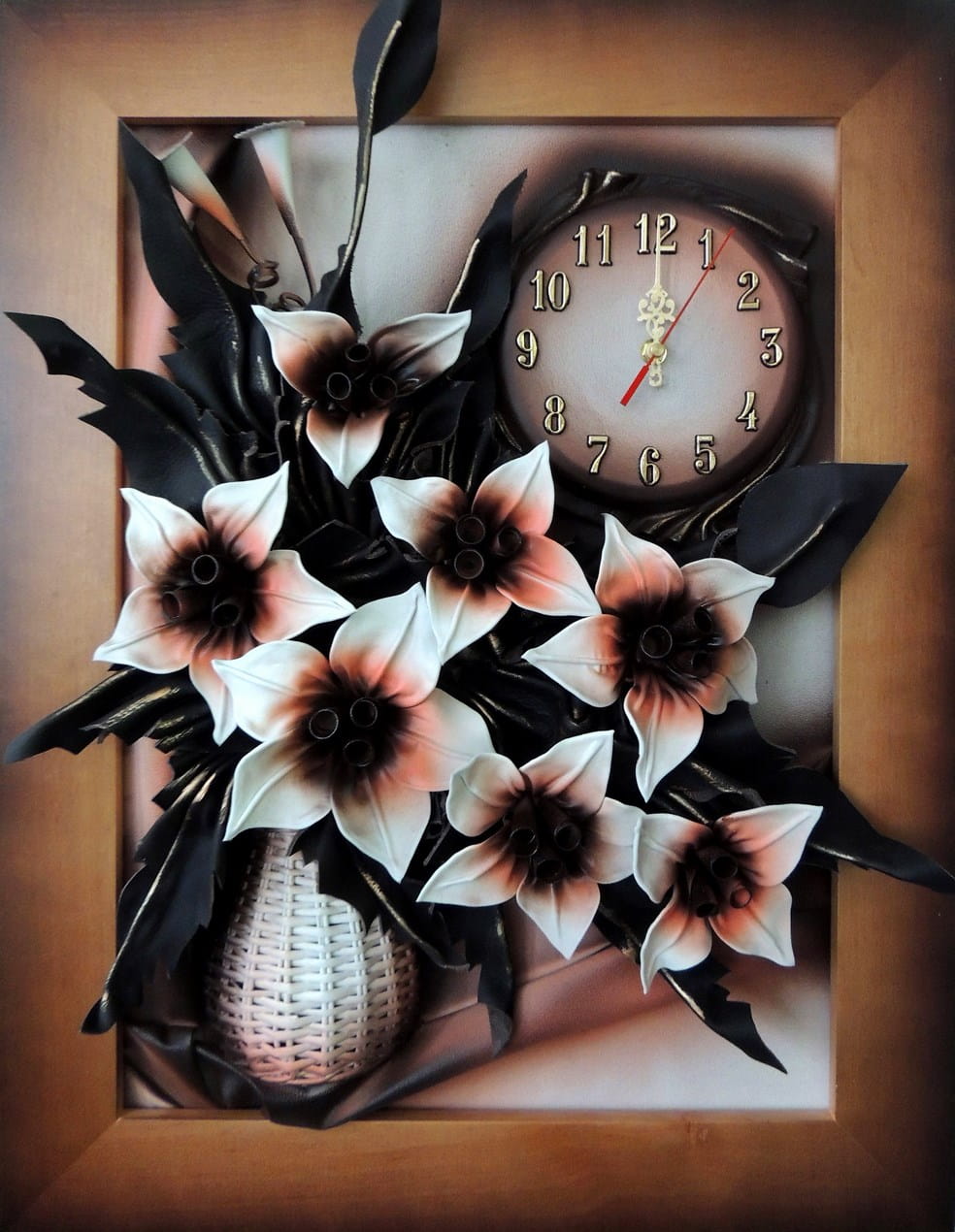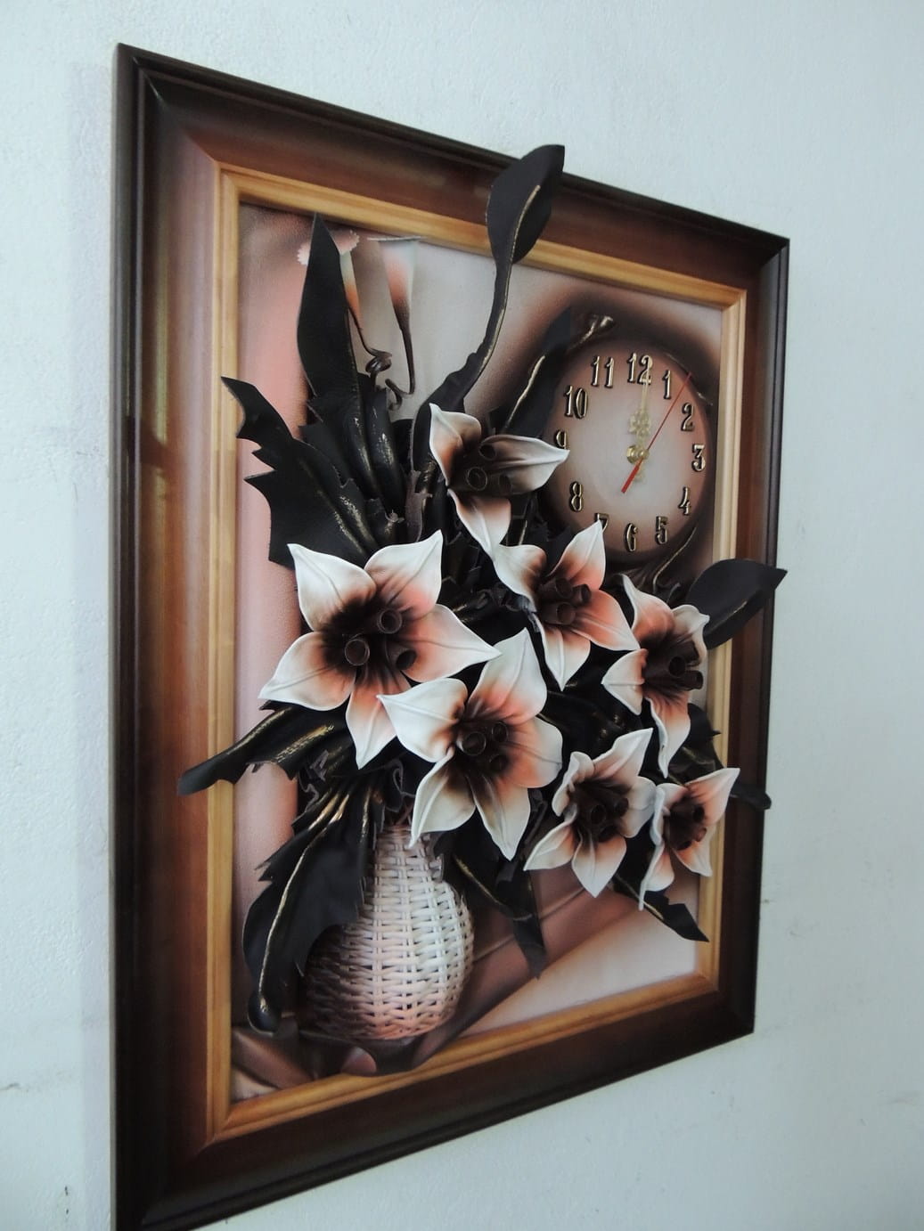 - Nowoczesny obraz na PODZIĘKOWANIE DLA RODZICÓW - kwiaty + zegar - K8D-7