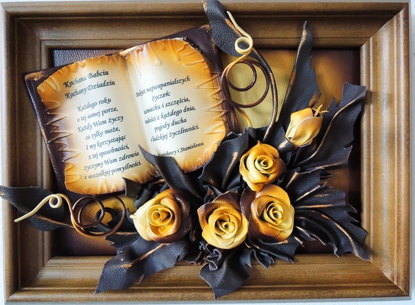 Obraz ze skóry z dedykacją