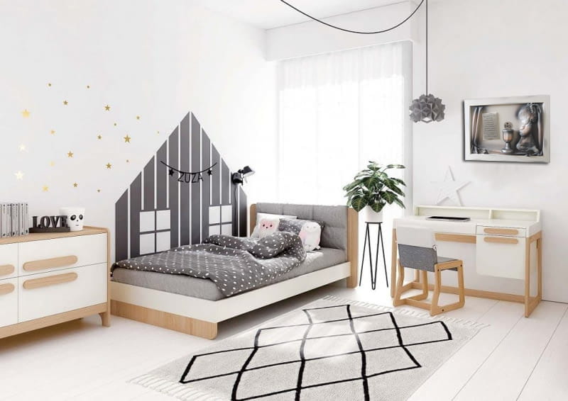 rama: lite drewno, biało-srebrna