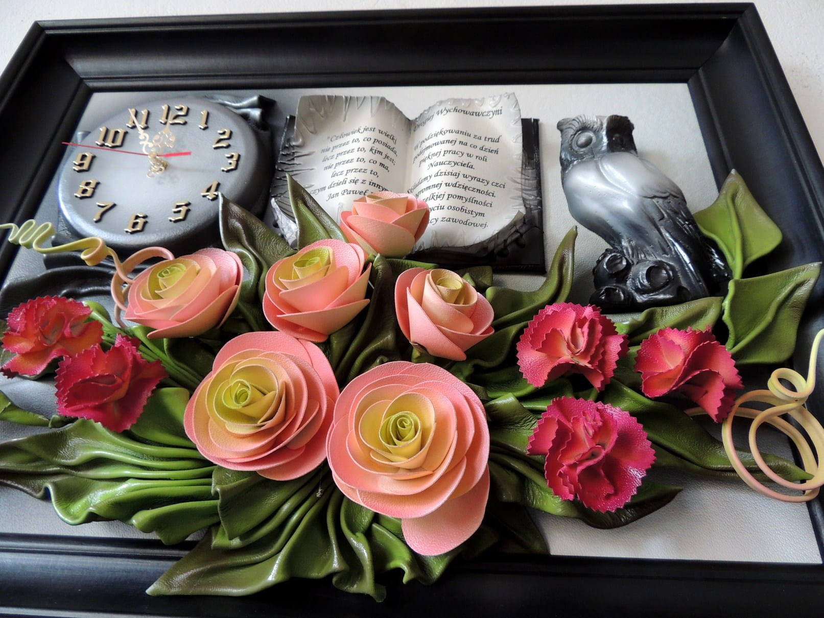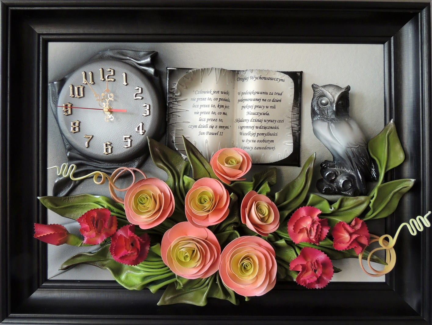 Obraz z dedykacją dla nauczyciela /ki - RÓZE I GOŹDZIKI skóra - SD6-3