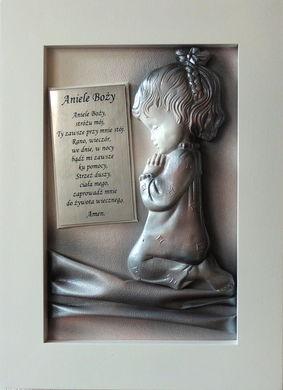 Obraz z dedykacją (grawerem) dla dziewczynki na KOMUNIĘ - CHRZCINY - A2-D4
