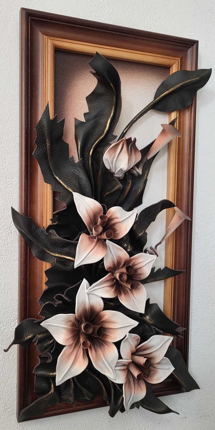 Obraz z kwiatami w wąskie drewnianej ramie.