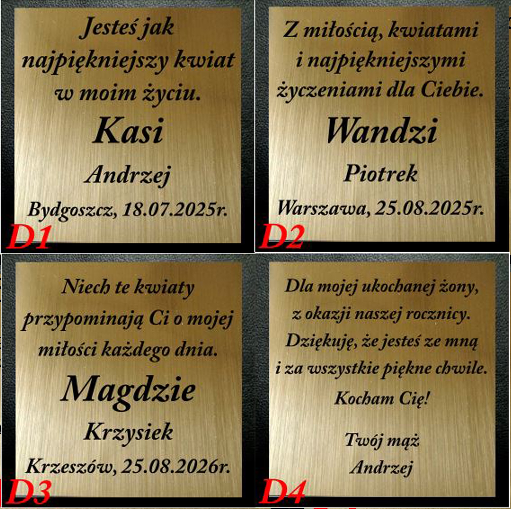 Jeśli chcesz 1 dedykację - 1 grawer zaznacz pole "wybieram produkt z grawerem +...zł"