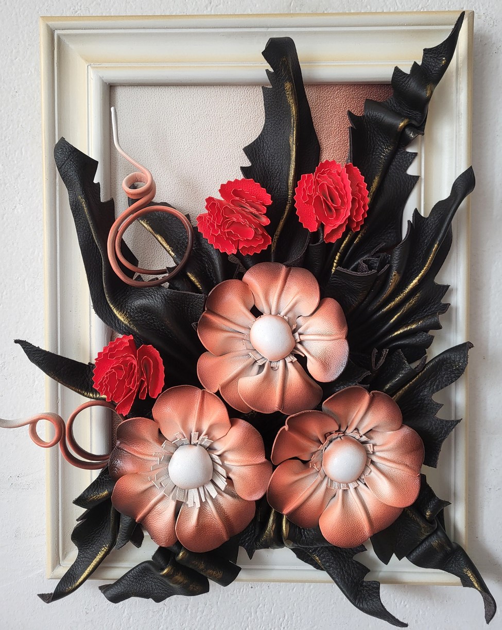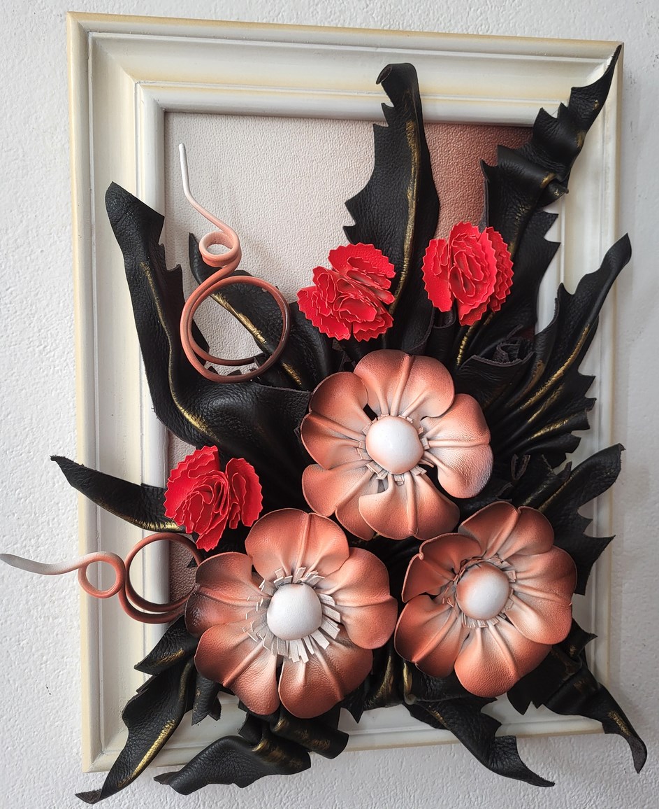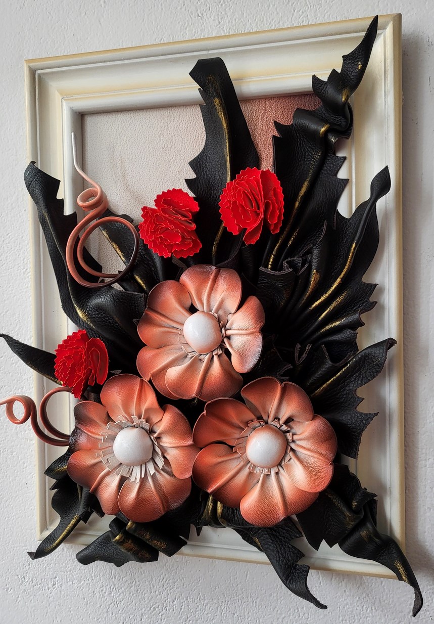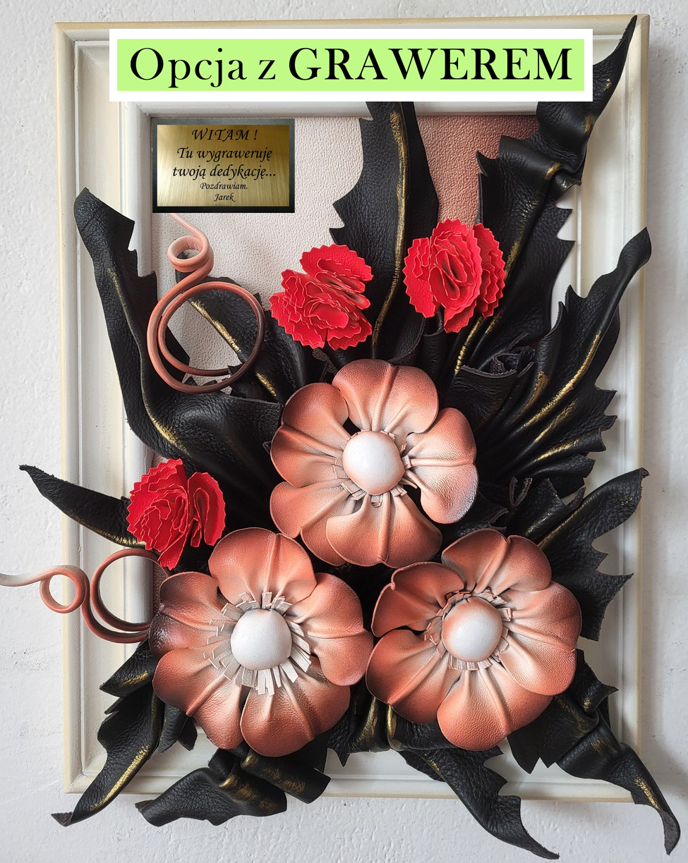 Obraz z kwiatami w biało-złotej ramia - PREZENT jubileusz URODZINY emerytura