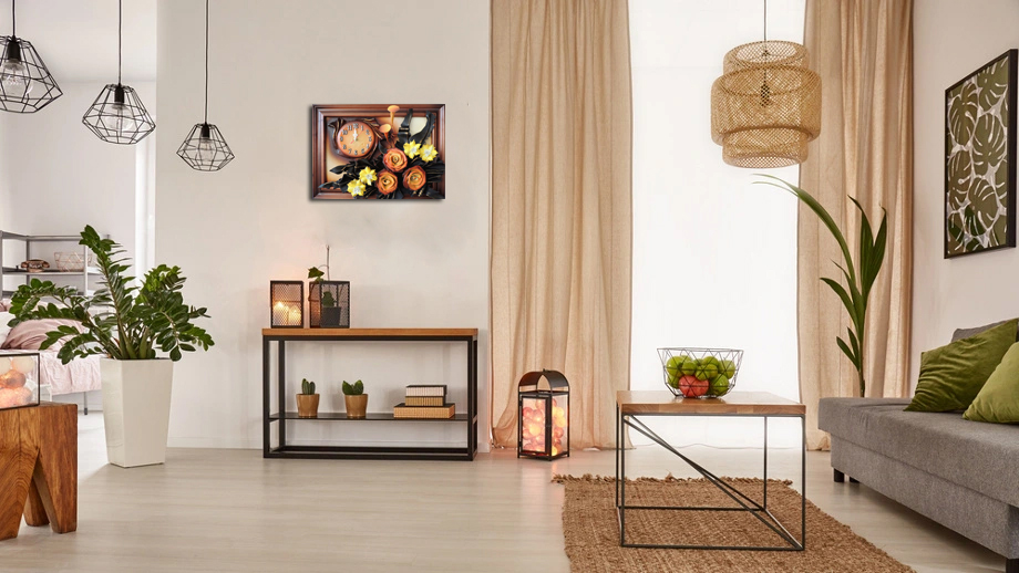 Obraz z zegarem 2 w 1 + kwiaty - prezent na urodziny JUBILEUSZ emeryturę