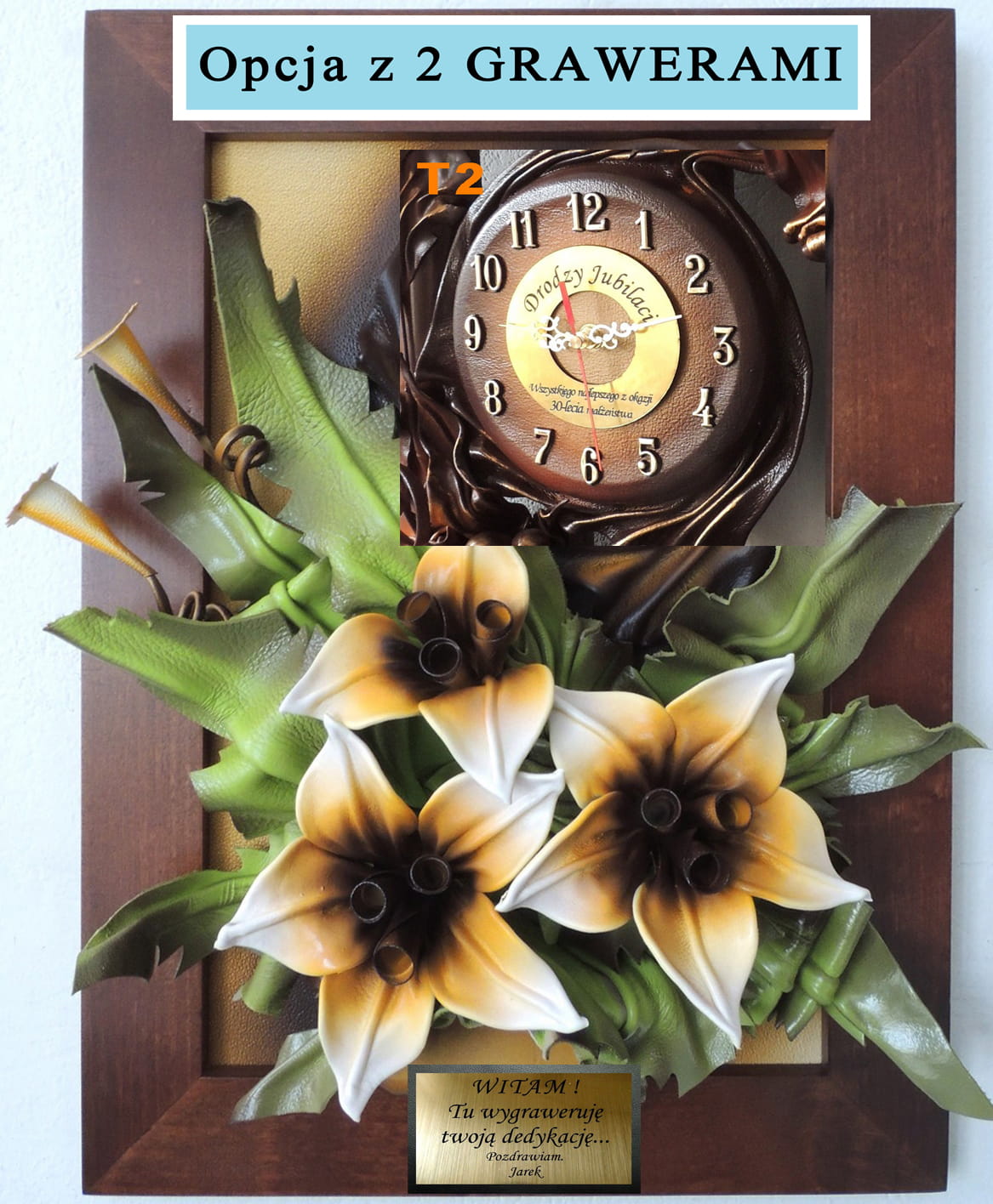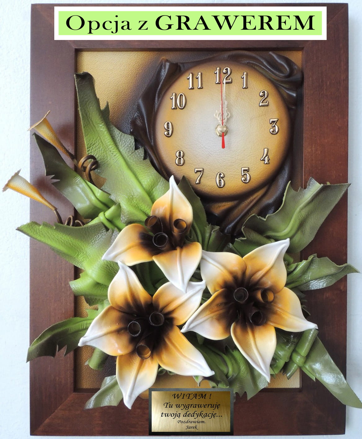 Obraz z zegarem i liliami - prezent na JUBILEUSZ urodziny Z OKAZJI PRZEJŚCIA EMERYTURĘ - K3Z-2