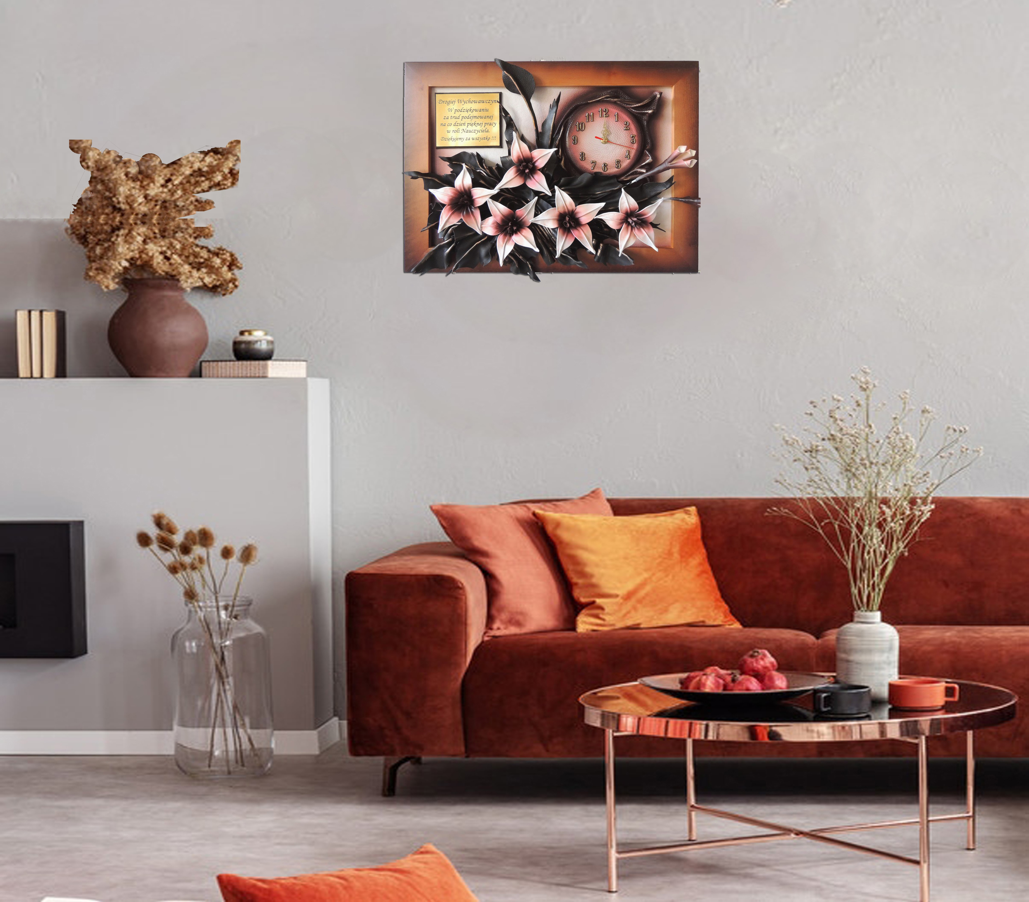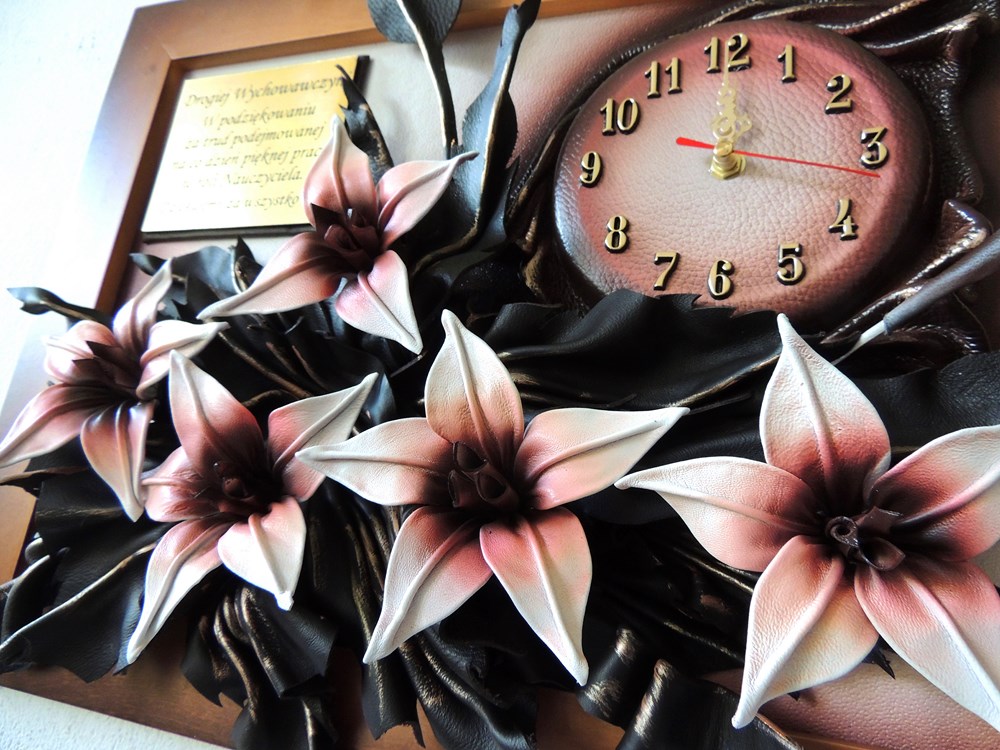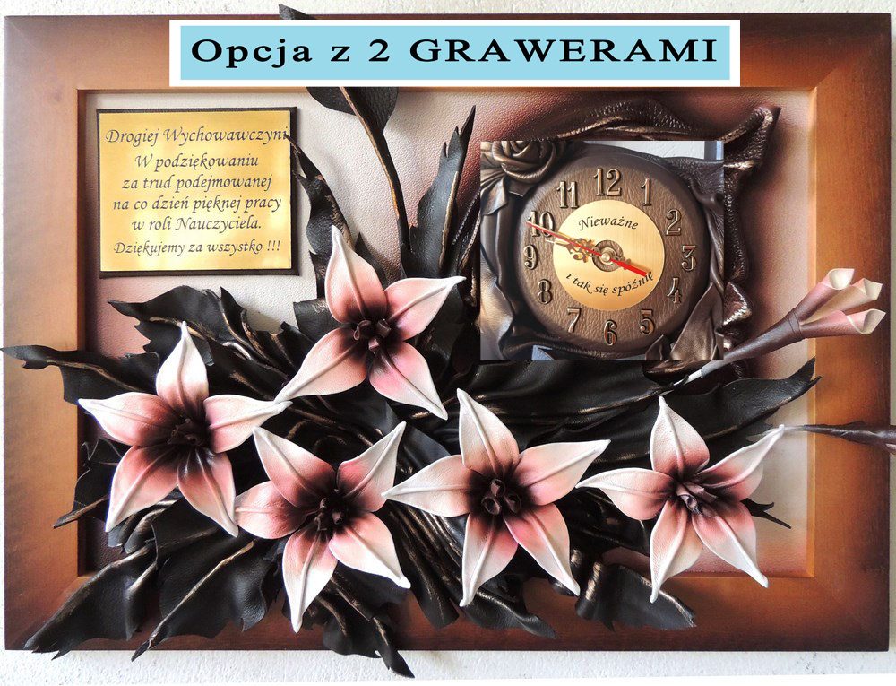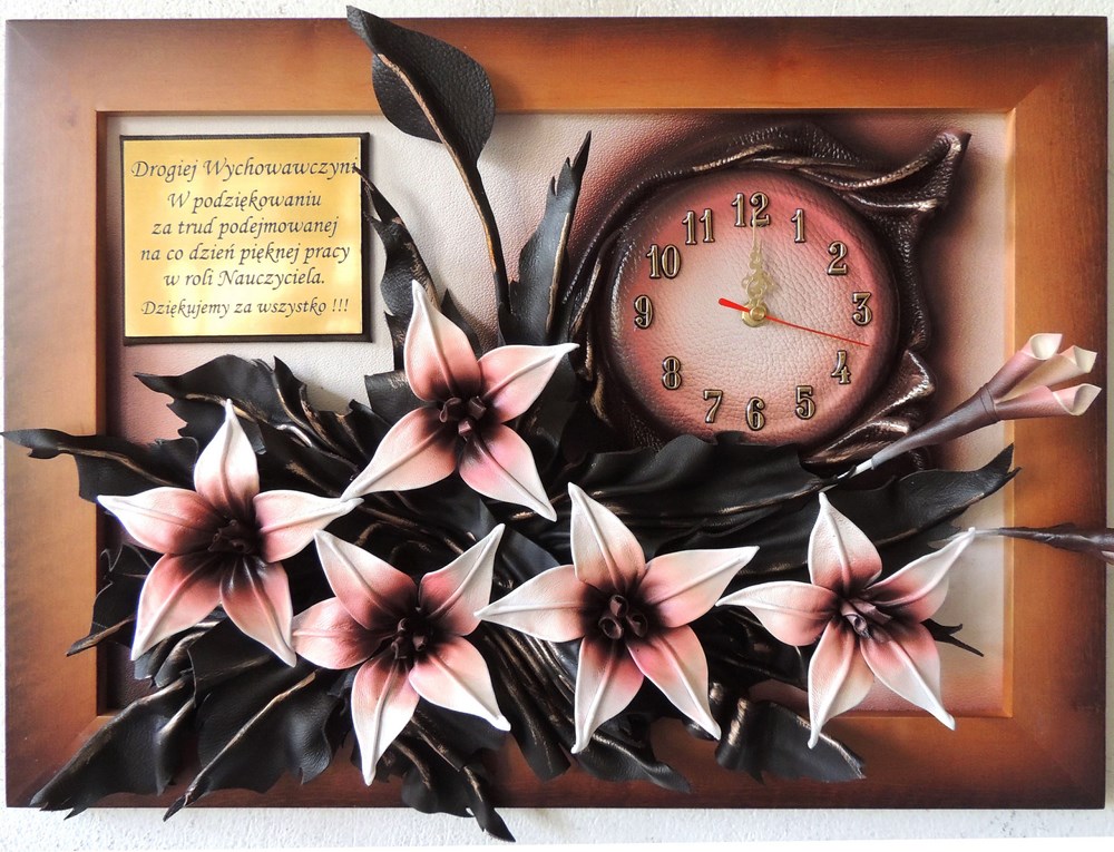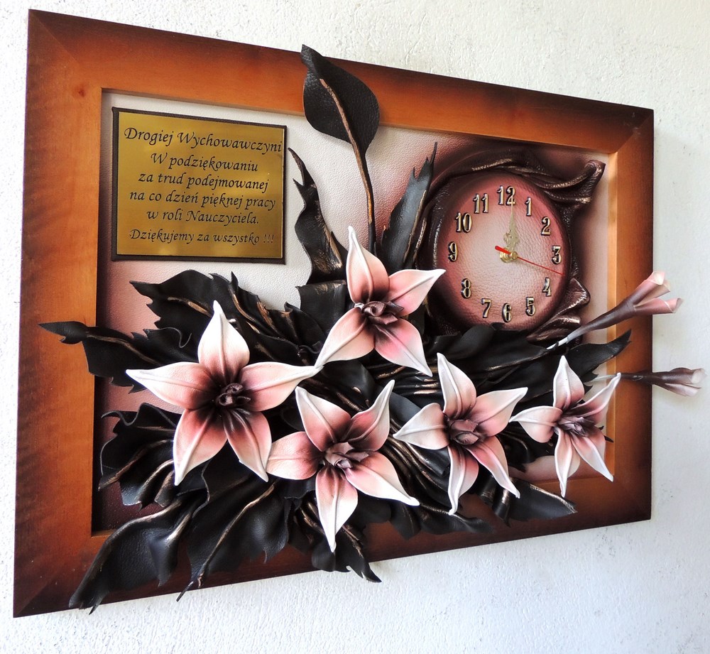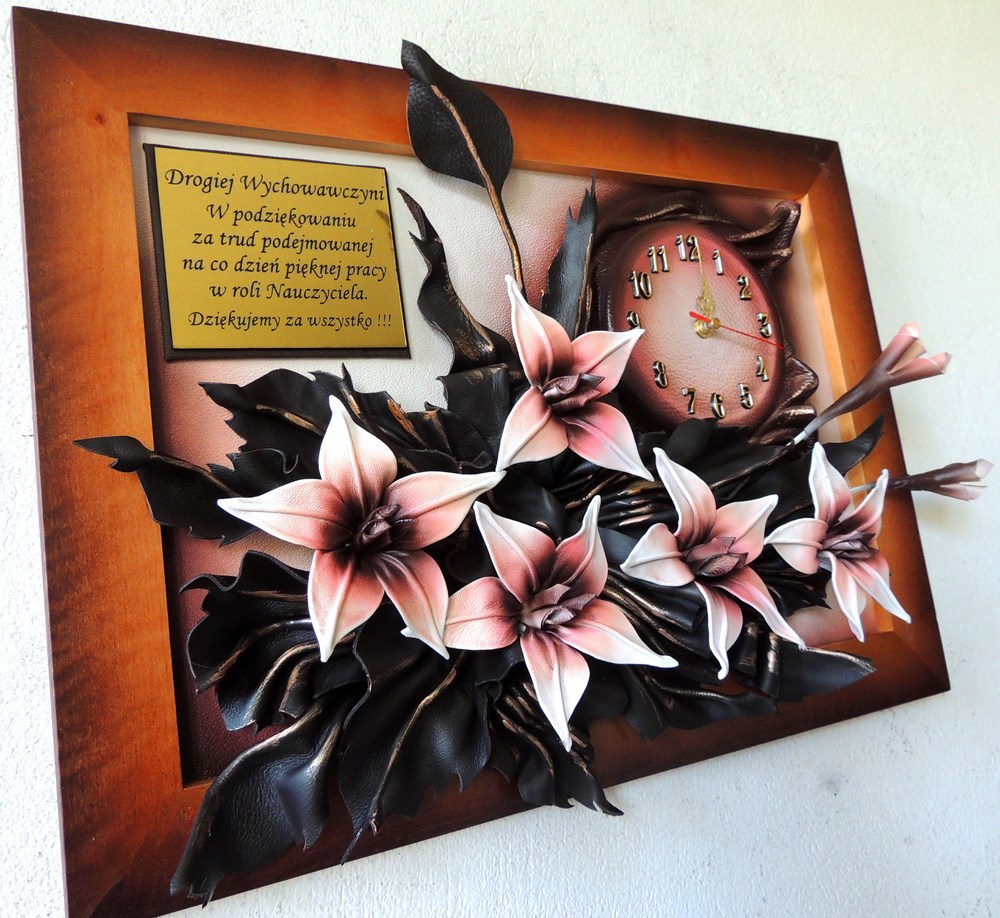 Obraz z zegarem i z liliami - prezent dla nauczycielki - wychowawczyni na koniec roku, dzień nauczyciela i inne okazje