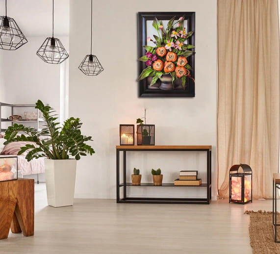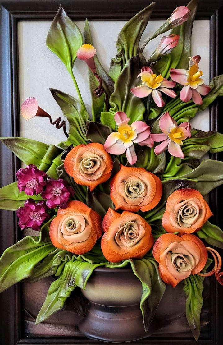 Obraz ze skóry " Kolorowy bukiet kwiatów" na prezent z okazji 30-tej Rocznicy Ślubu