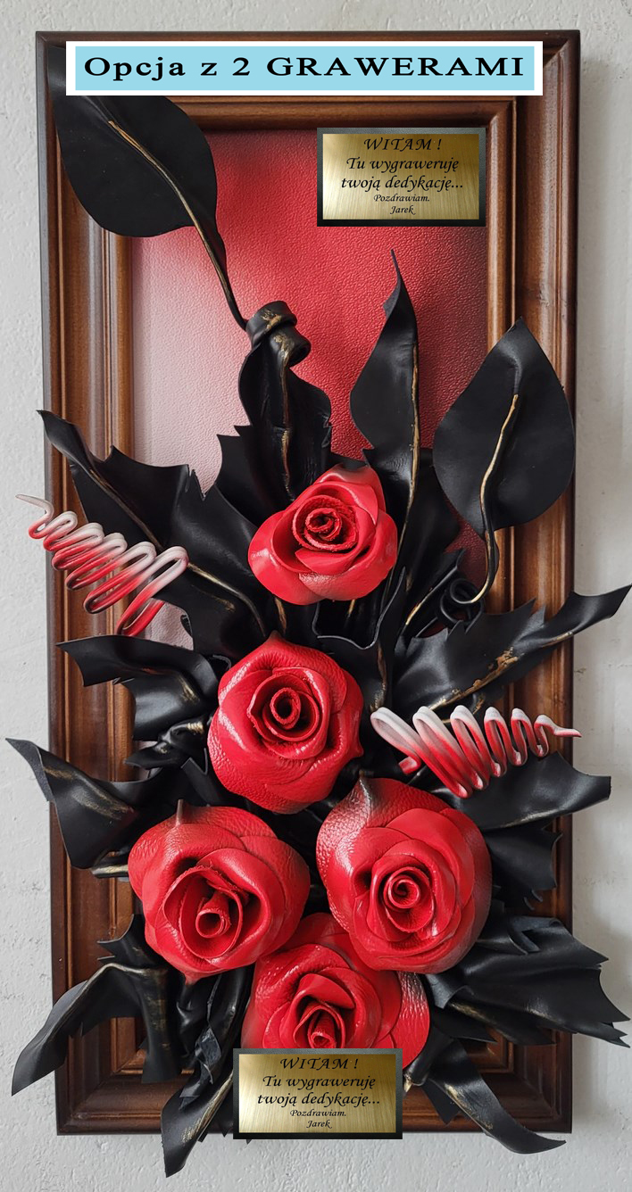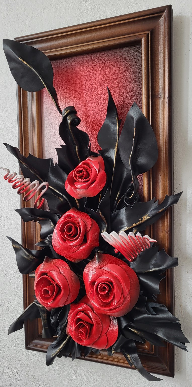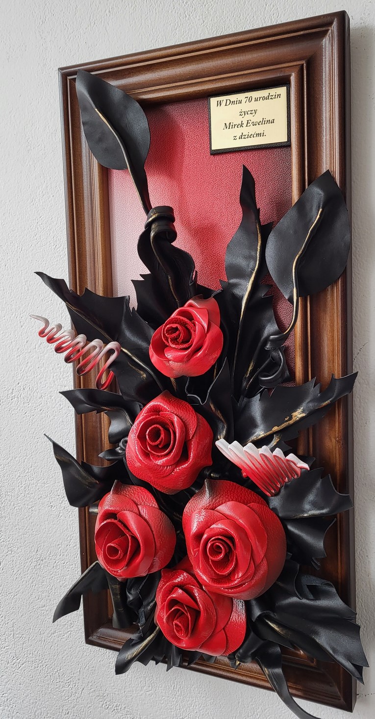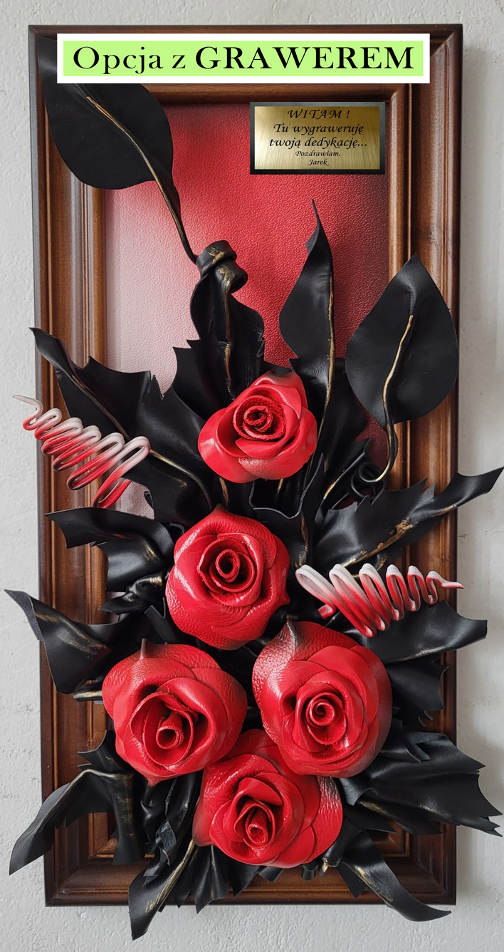 Obraz ze skóry - Róże - meksykanska czerwień - na prezezent dla kobiety - mamy - babci