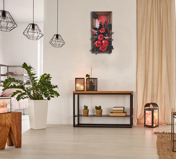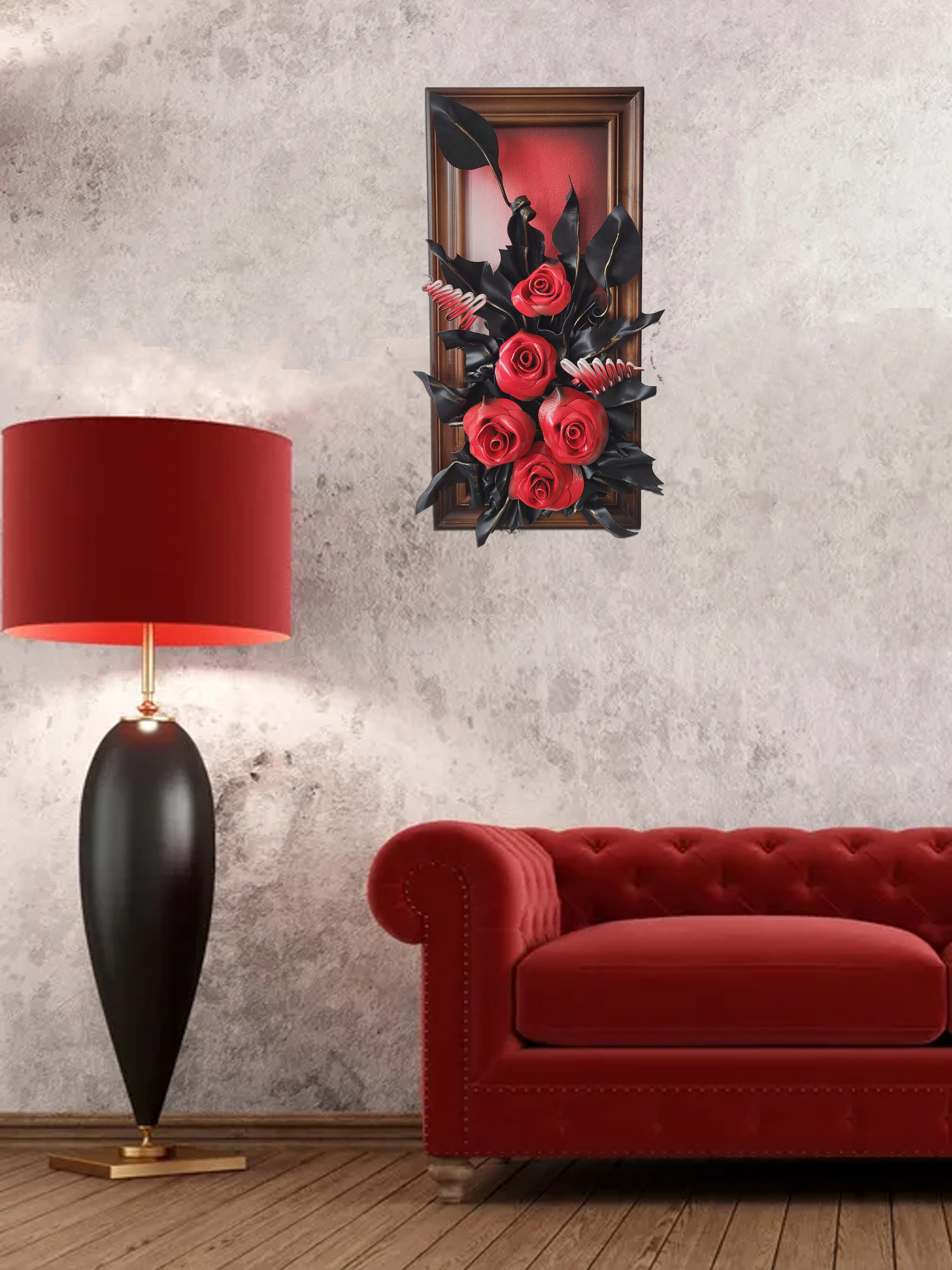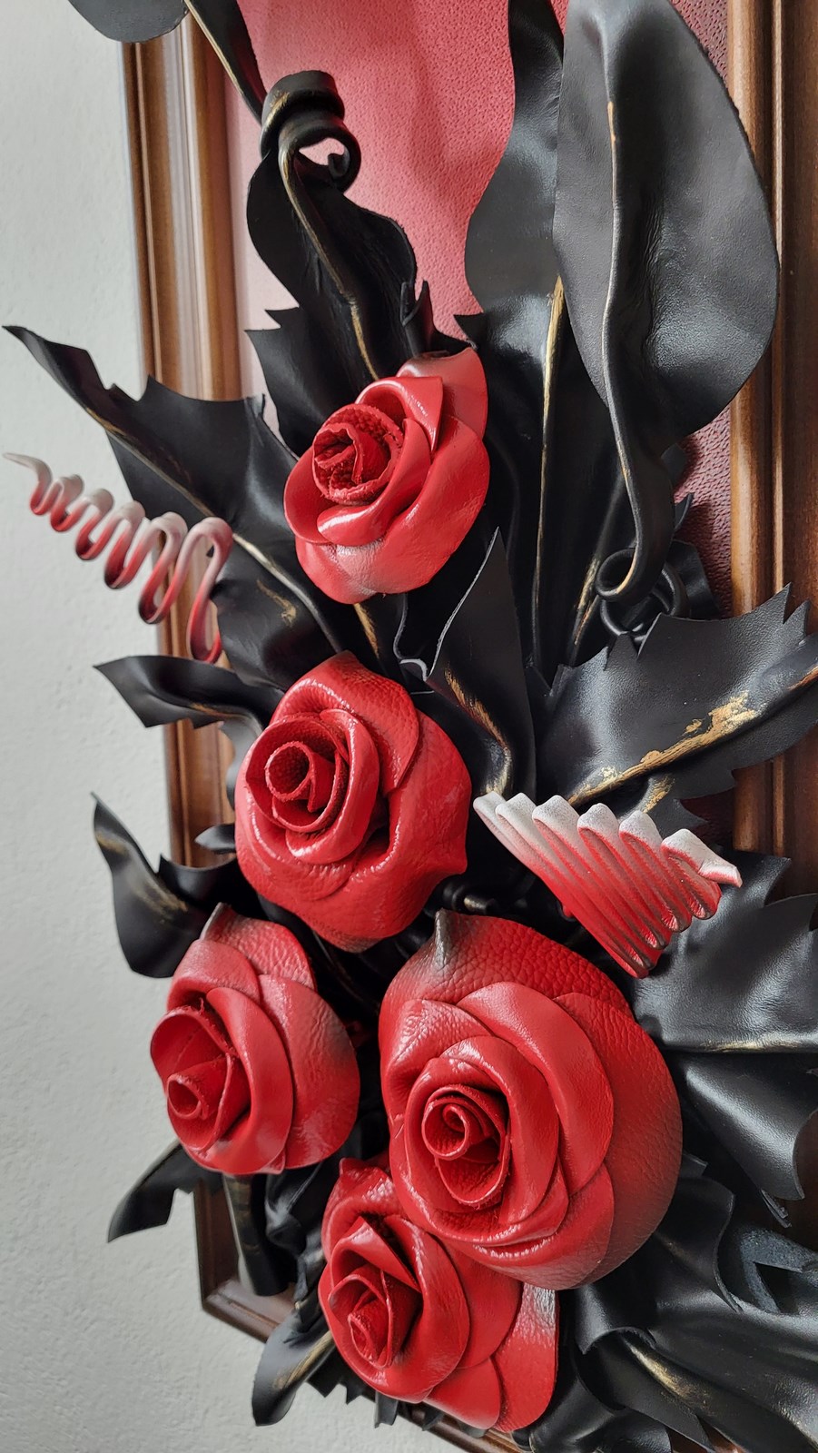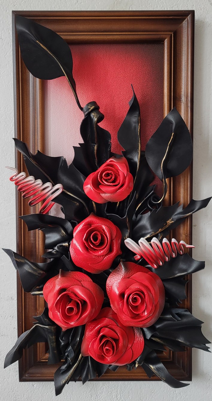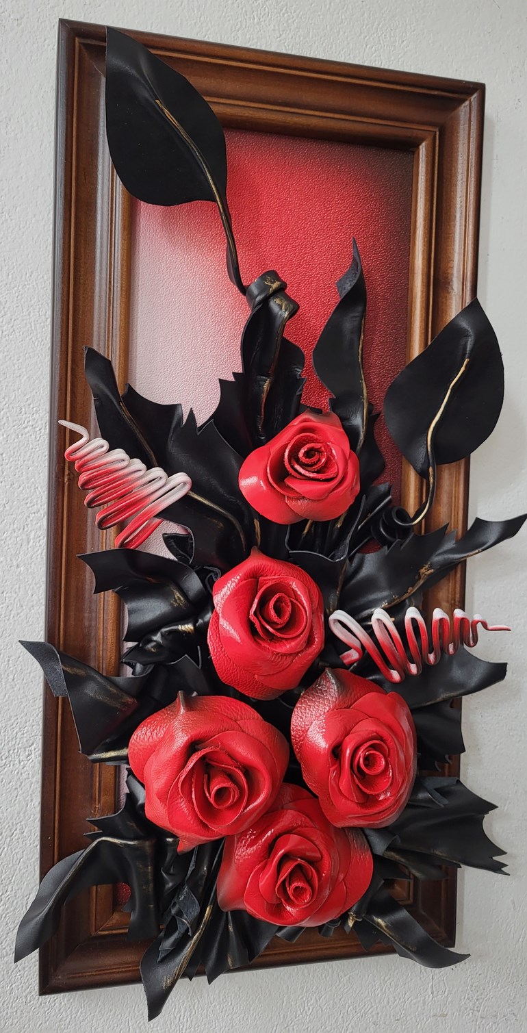 Obraz ze skóry - Róże - meksykanska czerwień - na prezezent dla kobiety - mamy - babci