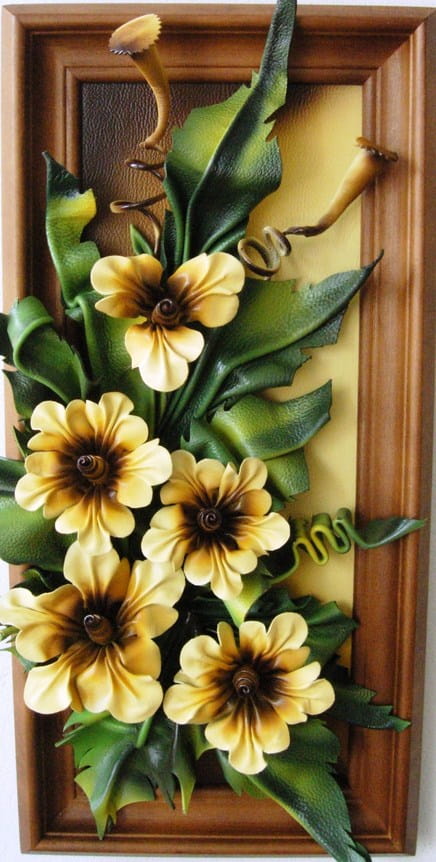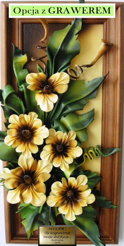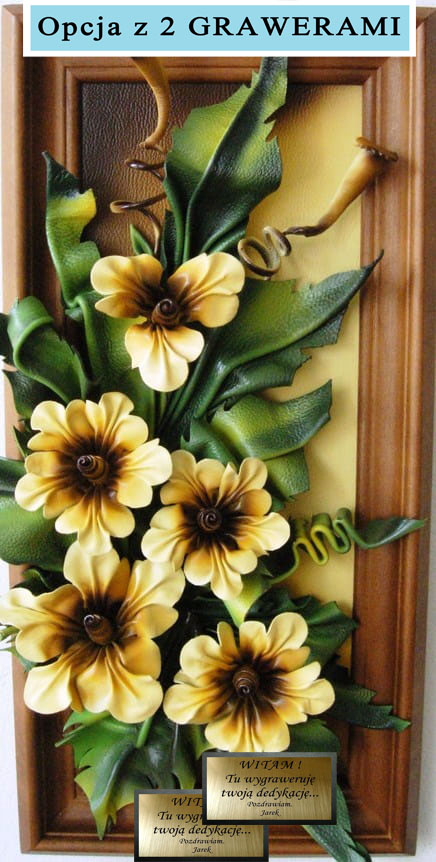 Obraz ze skóry w drewnianej ramie koloru złoty dąb - prezent na jubileusz URODZINY emeryturę
