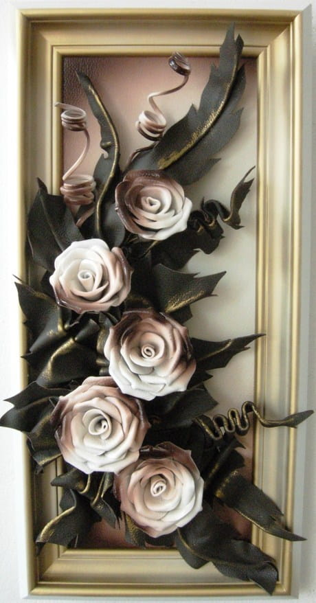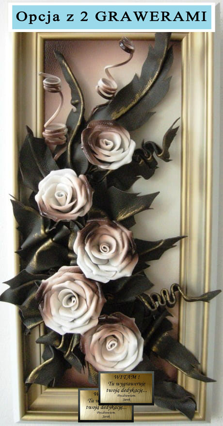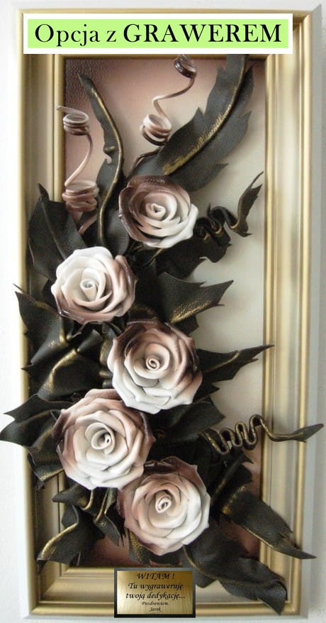 Obraz ze skóry z różami na prezent dla kobiety na urodziny JUBILEUSZ