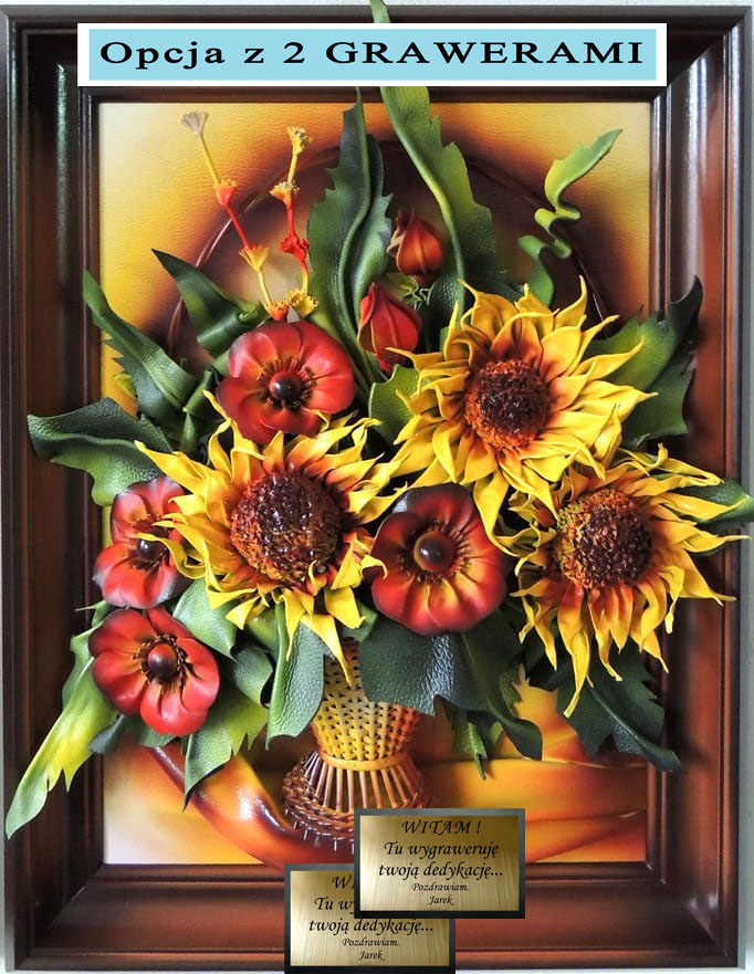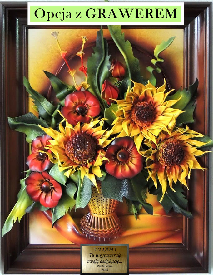 Obraz ze słonecznikami i makami w wiklinowym koszu - Prezent na jubileusz PODZIĘKOWANIE urodziny