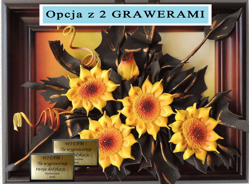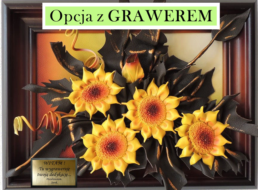 Obraz ze słonecznikami ze skóry na jubileusz - urodziny czy też emeryturę...