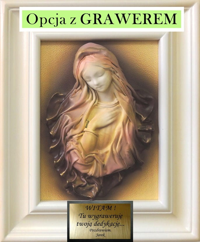 Na ramie obrazu zamieszczamy 1 złotą tabliczkę z grawerem,