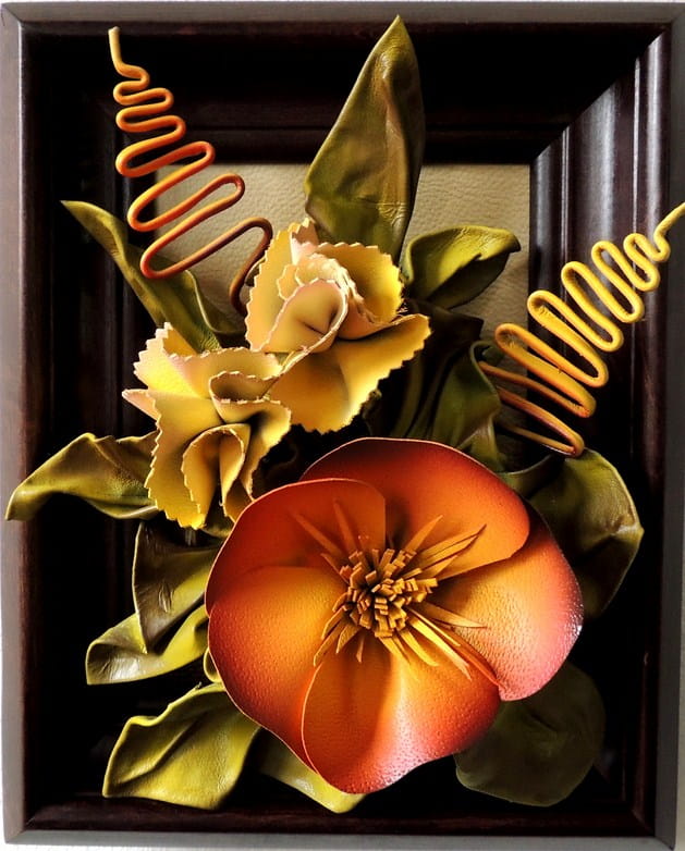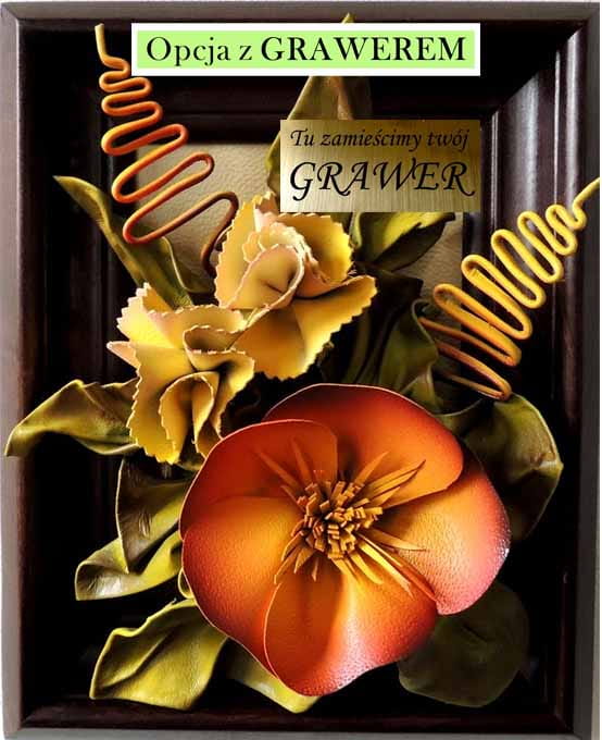 Obrazek z kwiatami ze skóry w drewnianej ramie na prezent dla kobiety