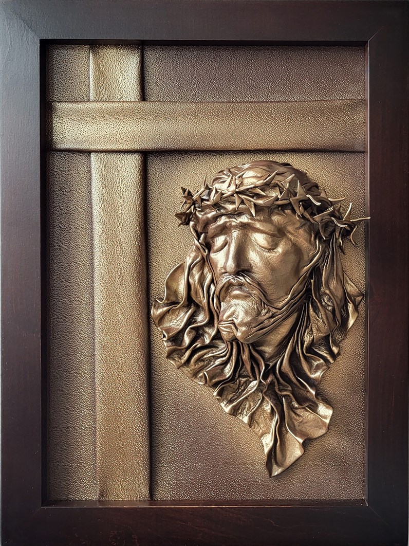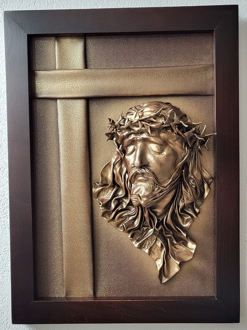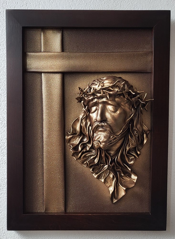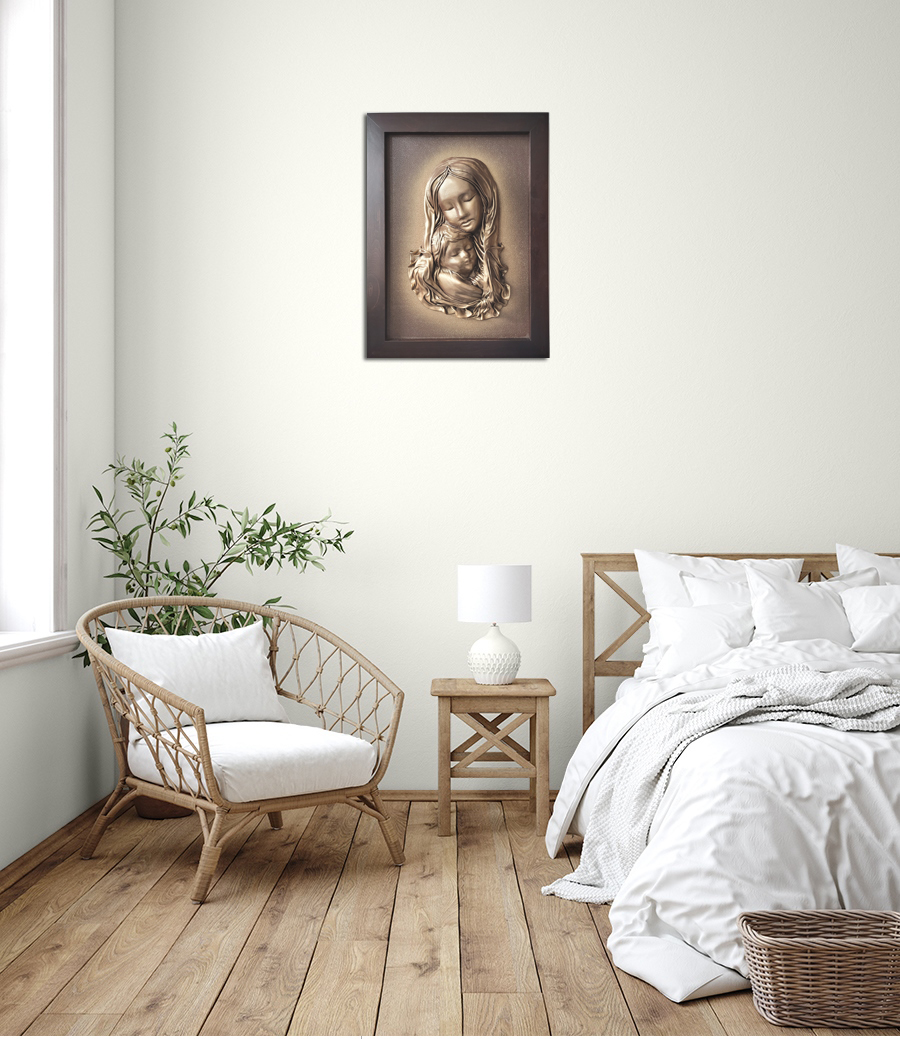 Obrazy z płaskorzeźbami Maryii i Jezusa