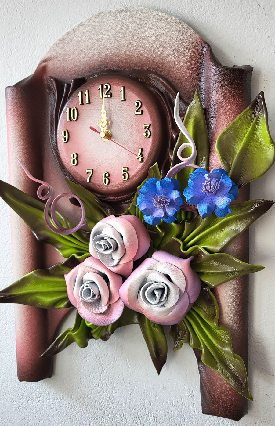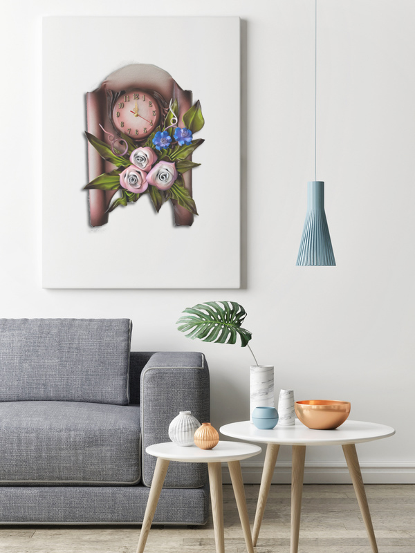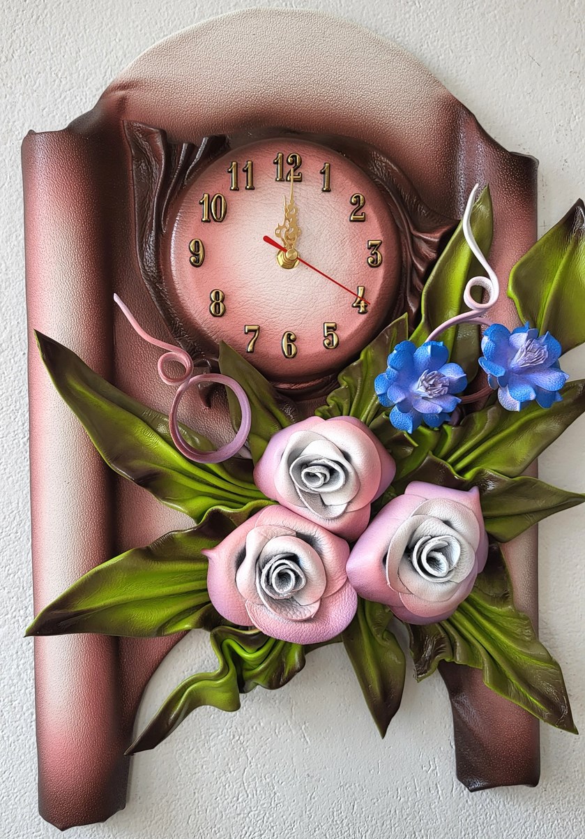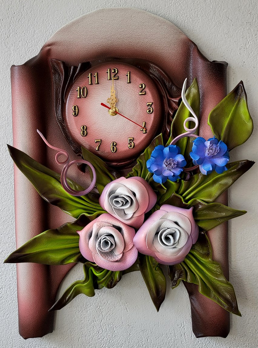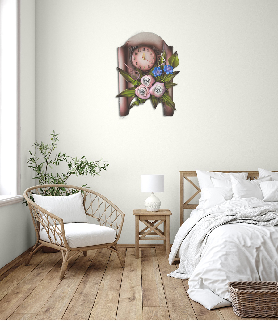 Zegar ścienny z różowo śliwkowymi różami