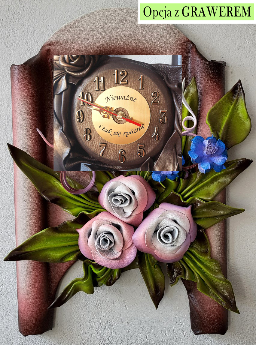 Oryginalny zegar ścienny z różami i chaberkami - na prezent JUBILEUSZ urodziny DLA MAMY i inne okazje